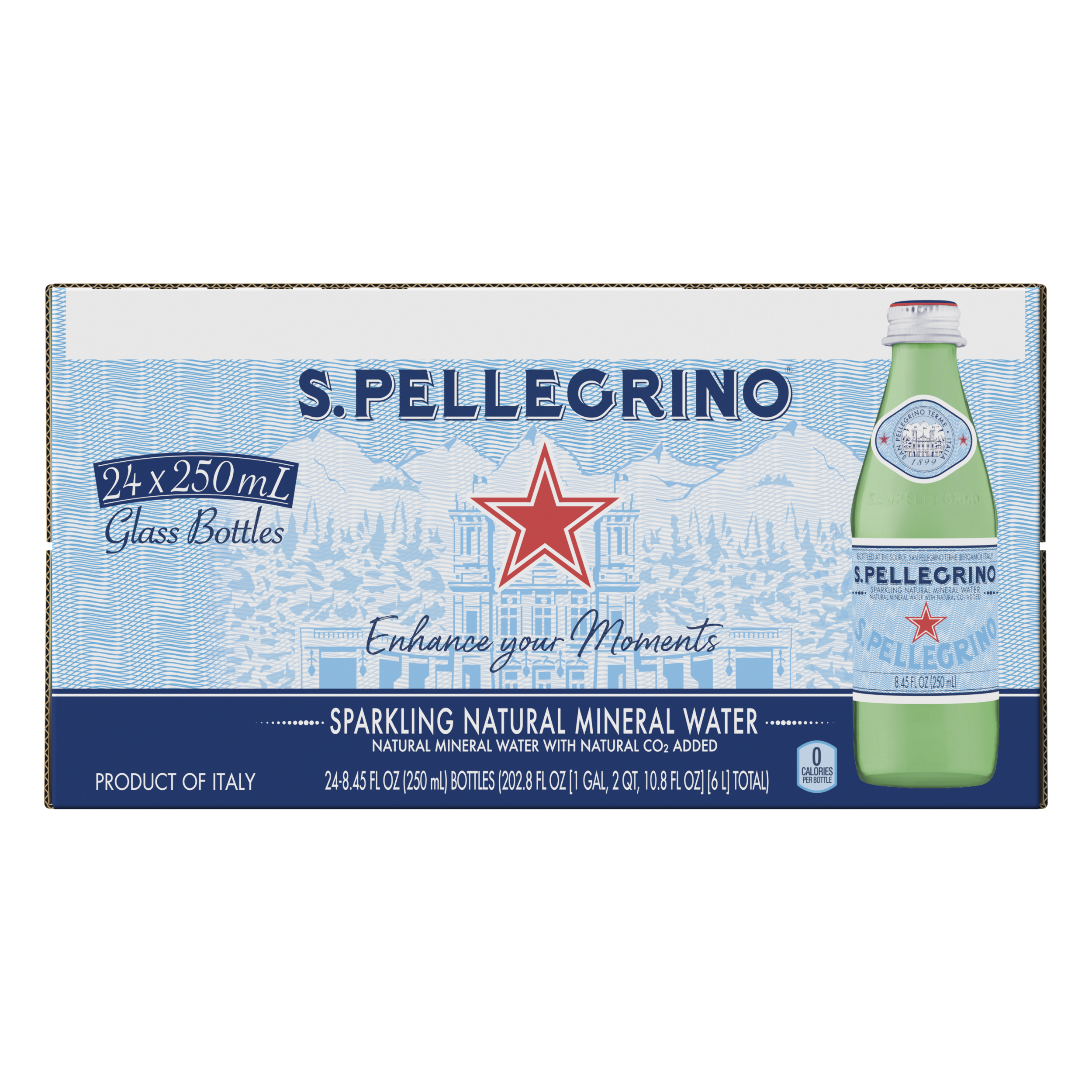 S.PELLEGRINO Woda mineralna gazowana to unikalna mieszanka minerałów, drobnych bąbelków i subtelnych niuansów. Jest to jedna z najbardziej znanych wód na świecie i doskonały dodatek do jednych z najlepszych składników na świecie. Wypływa z źródeł w Val Brembana w rejonie San Pellegrino Terme, u podnóża włoskich Alp, niedaleko Bergamo i w każdej butelce przywołuje kwintesencję włoskiego stylu życia. Ta elegancka szklana butelka jest idealna na każdą okazję i najlepiej smakuje z przyjaciółmi, bliską rodziną i wspaniałym jedzeniem. Ponieważ nic tak nie inspiruje ducha wspólnoty jak S.Pellegrino. Szklana butelka o pojemności 250 ml, w sam raz do odświeżenia przy małym posiłku.