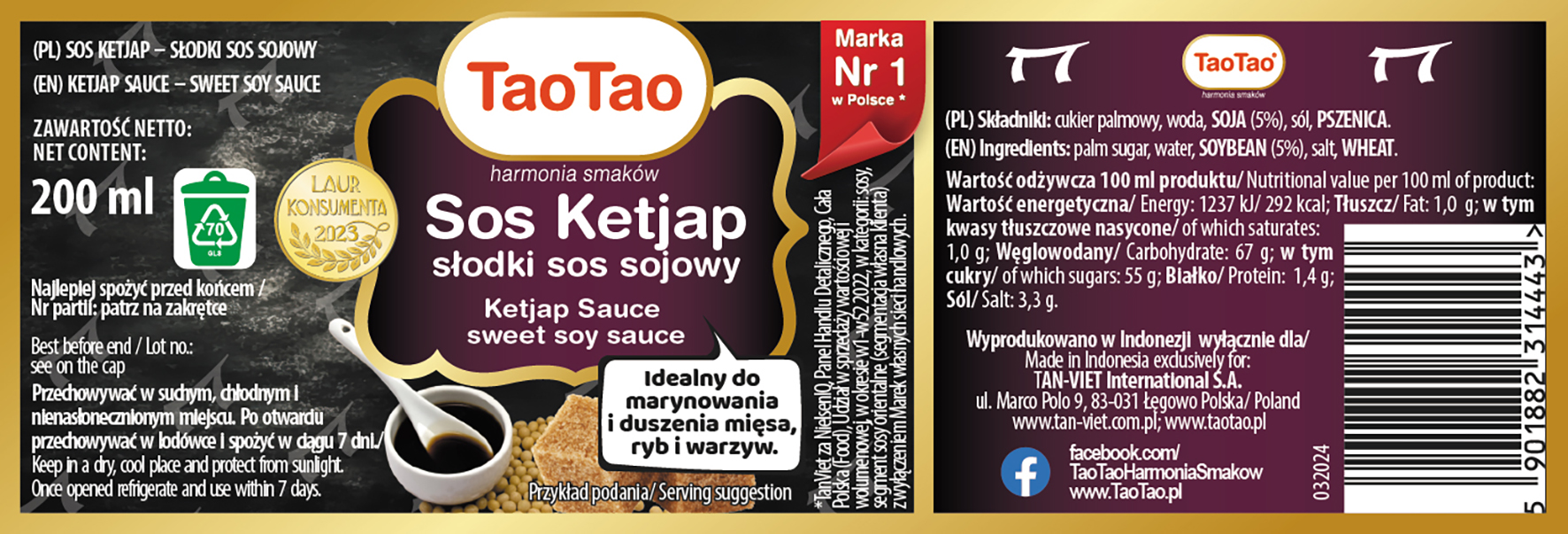 SOS Ketjap słodki sos sojowy 200 ml TAOTAO
