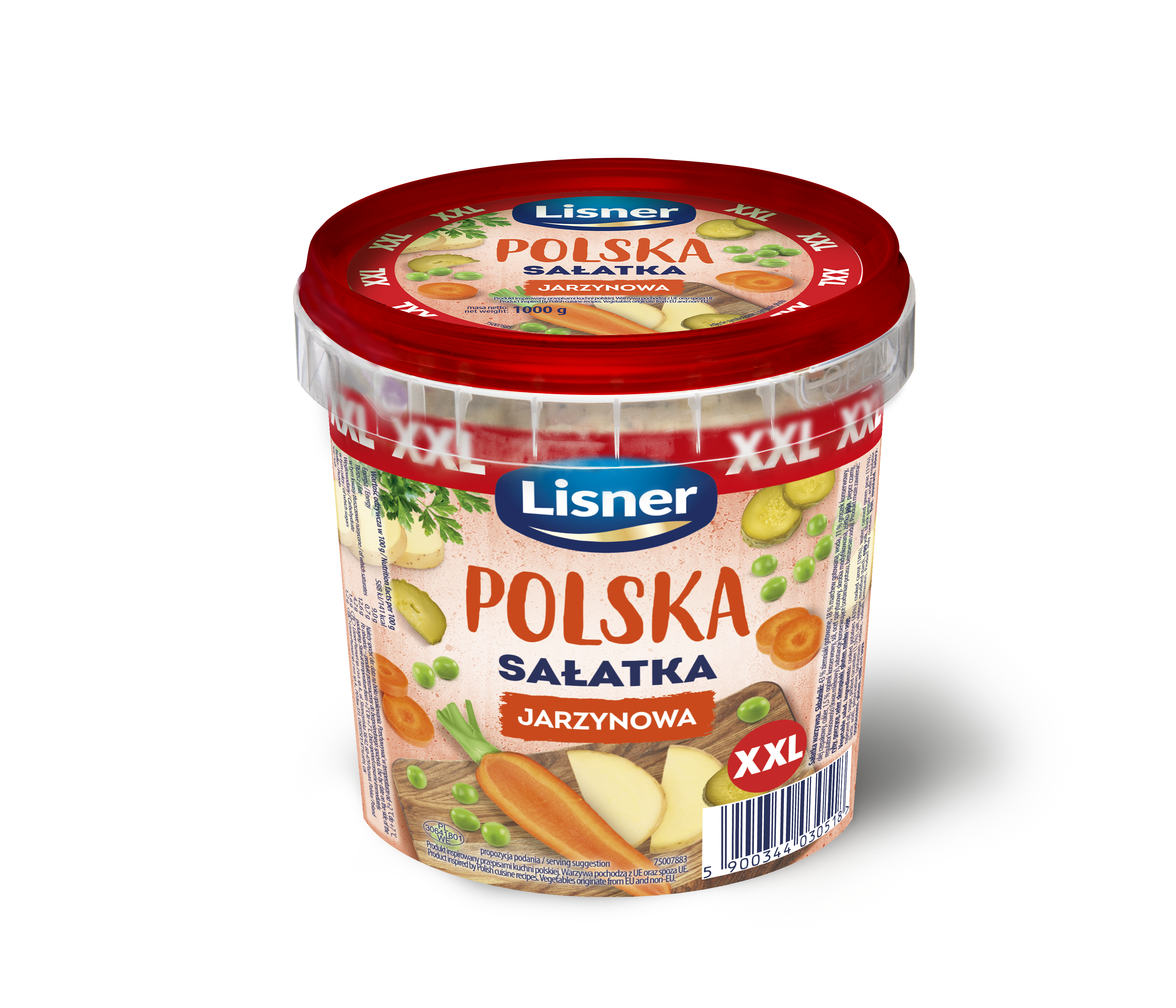 sałatka z majonezem na bazie ziemiaków, marchwi, groszku, ogórka, oleju rzepakowego oraz aromatycznych przypraw. Uwielbiana przez Konsumentów od wielu lat. Wygodna porcja XXL - doskonała na spotkania w rodzinnym gronie, ale nie tylko. Produkt nagrodzony w plebiscycie HIT KONSUMENTA 2022.