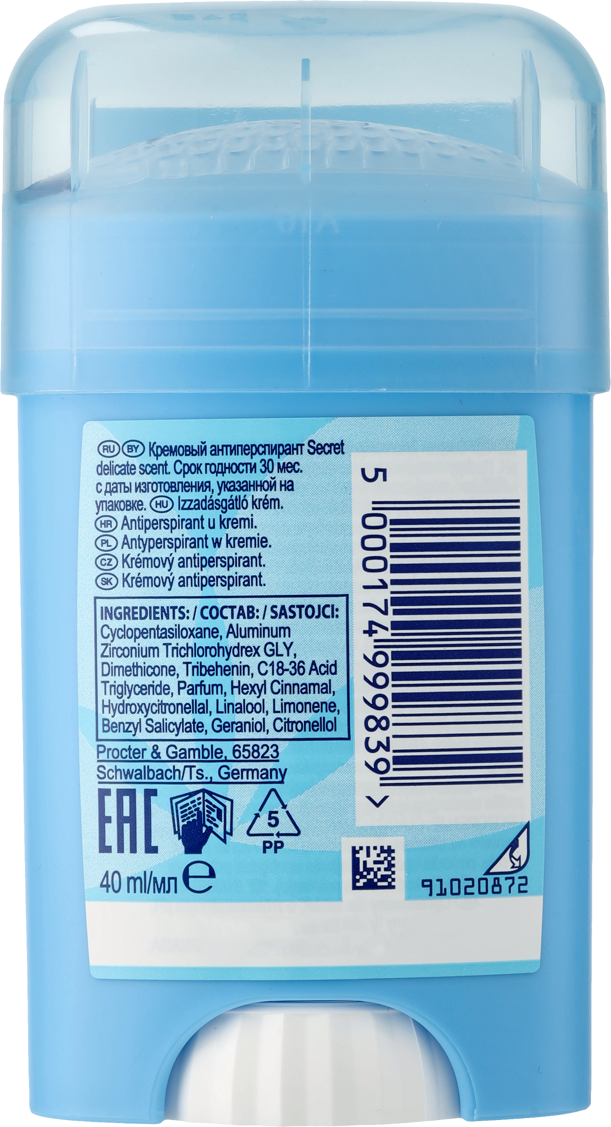 Kolekcja Secret Fresh, która zapewnia zrównoważone pH, została wzbogacona o substancje nawilżające, które pozostawiają skórę gładką. Ponadto dzięki ulepszonej technologii pięknyzapach będzie otaczać Cię przez długi czas. Kremowy antyperspirant w sztyfcie Secret jest przyjemnie suchy a jednocześnie pomaga eliminować nieprzyjemne zapachy i mokre plamy przez 48 godzin. Odkryj niezawodną świeżość dzięki kremowemu antyperspirantowi w sztyfcie Secret. To najpopularniejsza marka dezodorantów dla kobiet w Stanach Zjednoczonych.