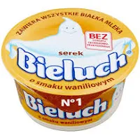 Serek Bieluch waniliowy to pyszny, kremowy i lekki jak mgiełka serek, produkowany wyłącznie z składników. Aromat wanilii, jednej z najszlachetniejszych ze wszystkich tropikalnych przypraw kusi nasze zmysły już po uchyleniu wieczka serka. Nie zawiera konserwantów i stabilizatorów. Produkowany jest nowoczesną technologią ultrafiltracji. Serek waniliowy Bieluch jest źródłem białka i wapnia dostarcza nam również energii i witamin występujących w mleku głownie z grupy B oraz A, D, E. W znacznym stopniu uzupełnia ich zalecane dzienne spożycie. Białko pomaga w utrzymaniu masy mięśniowej i zdrowych kości. Serek Bieluch waniliowy nie powoduje dolegliwości związanych z nietolerancją laktozy ponieważ zawiera jej tylko śladowe ilości.