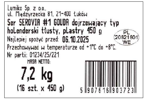 | Sposób przechowywania | przechowywać w warunkach chłodniczych |