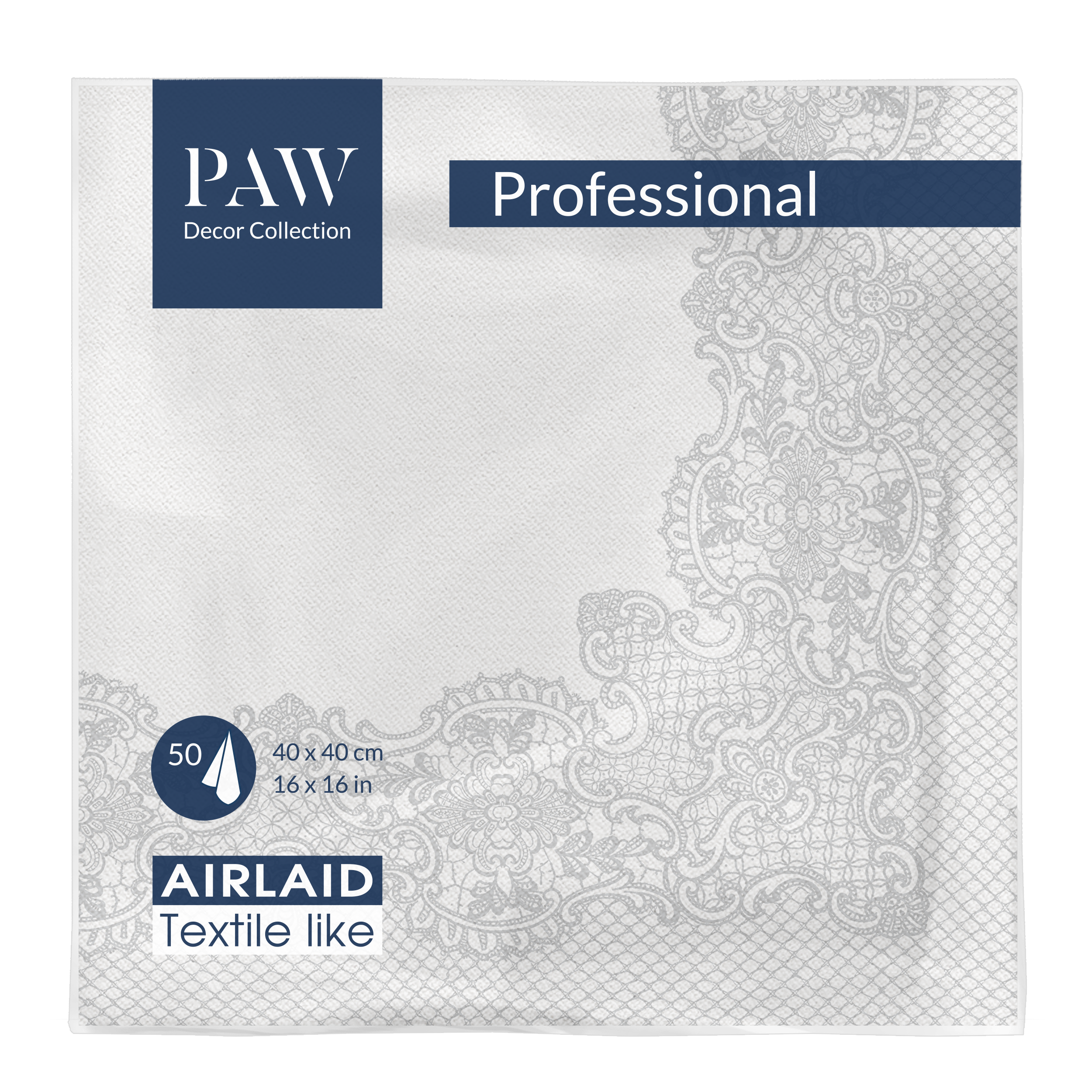 Serwetka paw professional dinner royal lace silver , serwetki 1 warstowe 40x40cm składane 45383 50 szt w paczce. wykonane z airlaid
