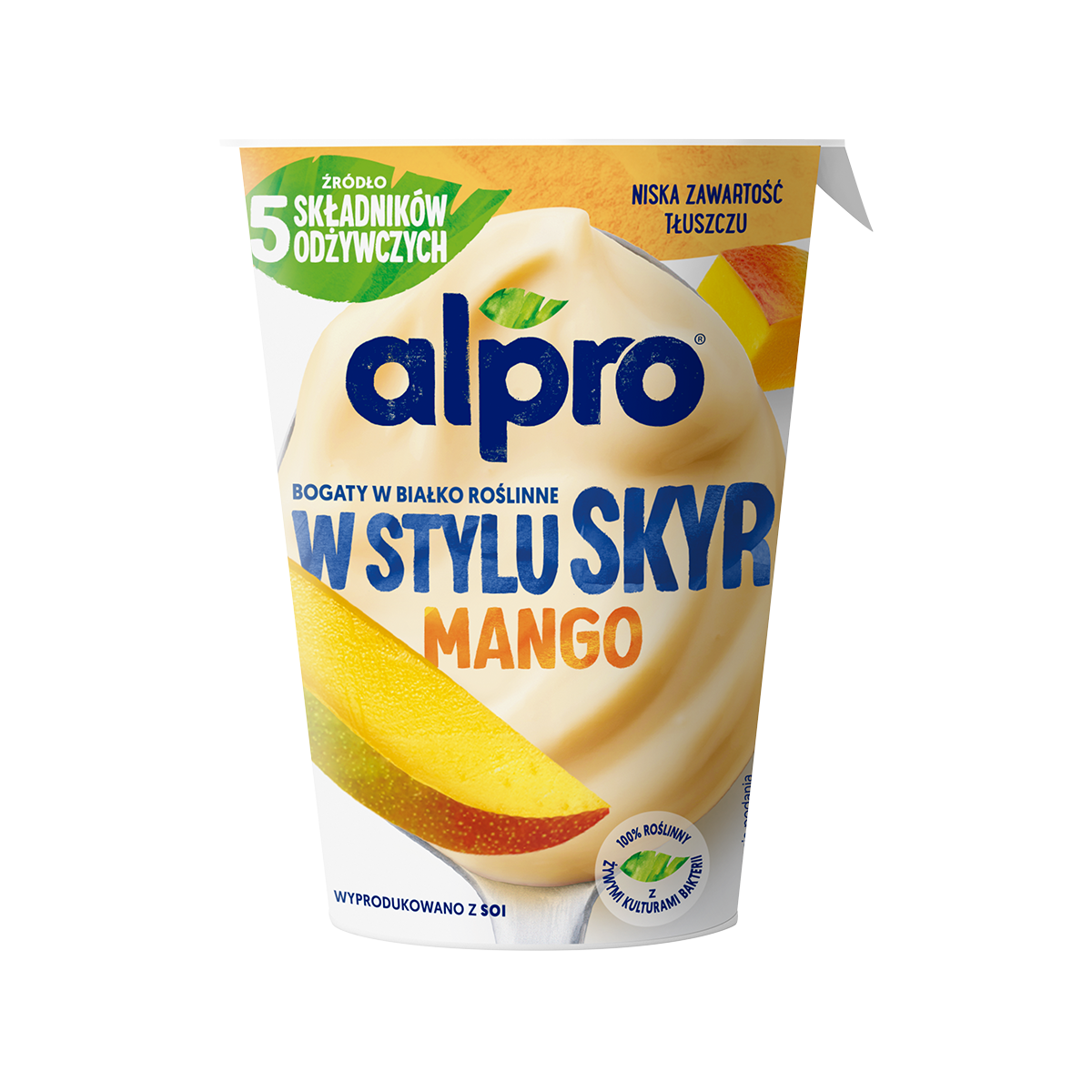 | Składniki | Baza sojowa (81,3%) (woda, obłuszczone ziarno soi (13,9%)), cukier, mango (5,1%), sok z marakui z soku zagęszczonego (4,6%), stabilizator (pektyny), regulatory kwasowości (cytryniany sodu, kwas cytrynowy), wapń, sól morska, aromaty, przeciwutleniacze (mieszanina tokoferoli, estry kwasów tłuszczowych i kwasu askorbinowego), witaminy b12, b2, d2, kultury jogurtowe (s. thermophilus, l. bulgaricus). może zawierać orzechy (nie zawiera orzeszków ziemnych). |