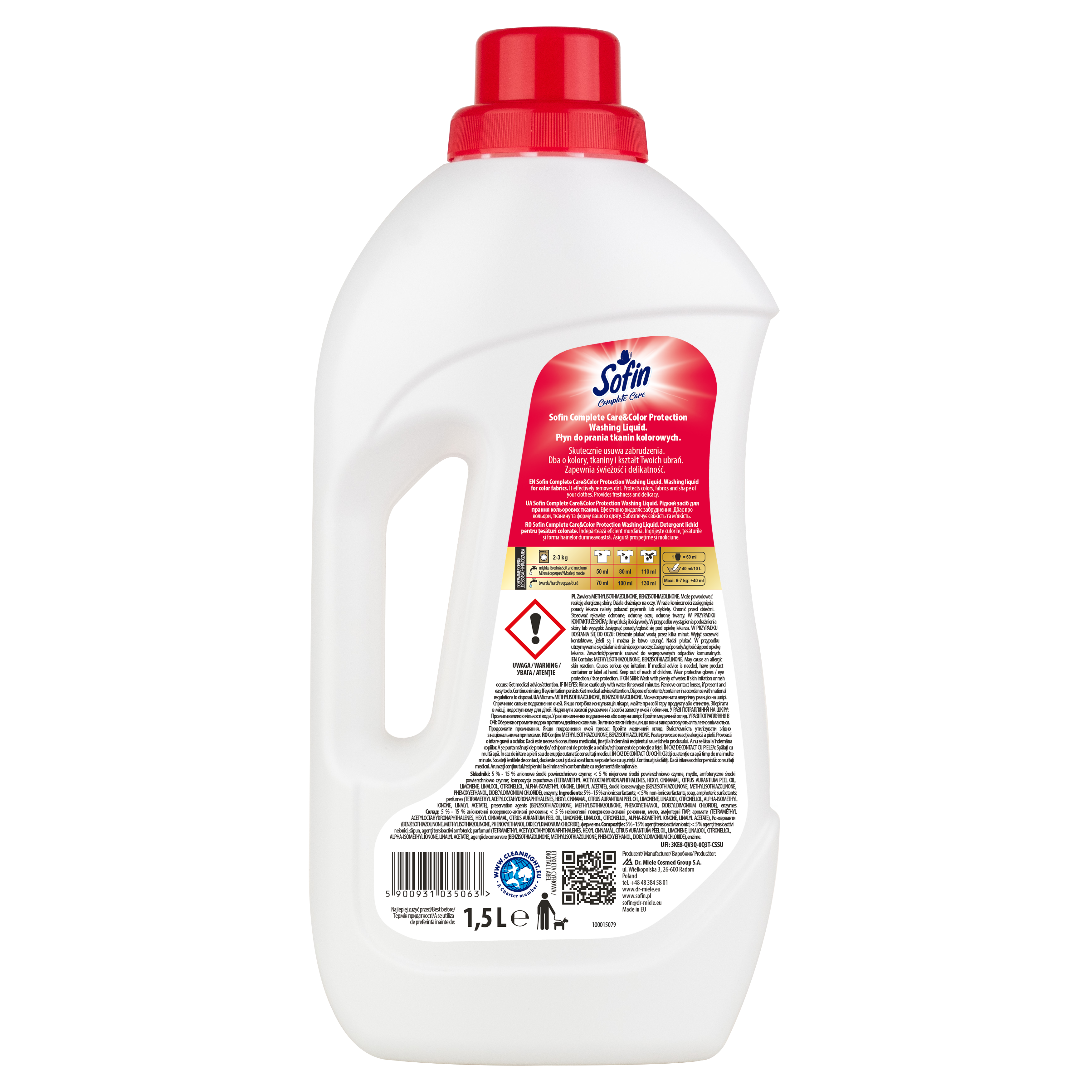 Sofin complete care & color protection washing liquid płyn do prania tkanin kolorowych 1,5 l
