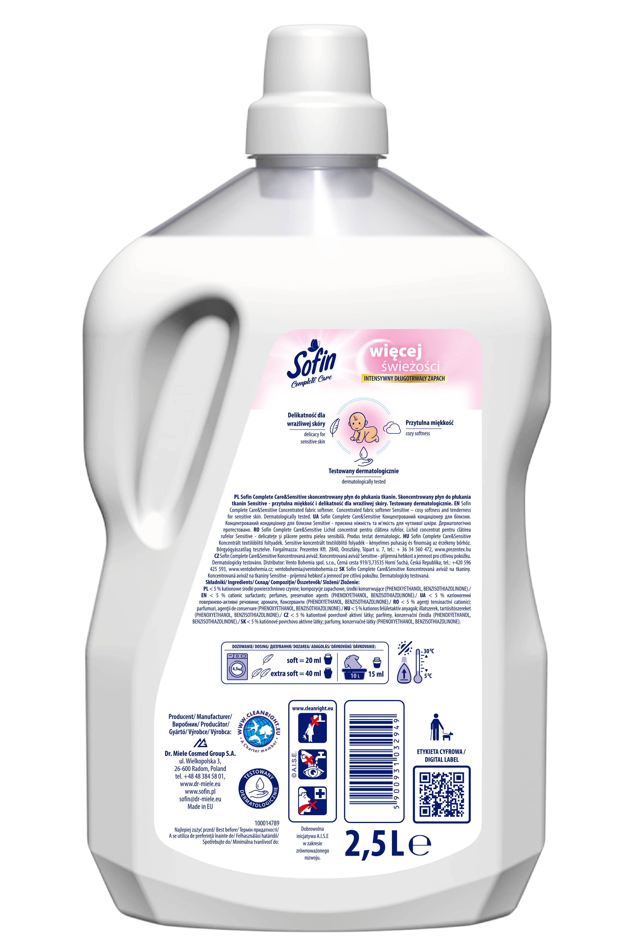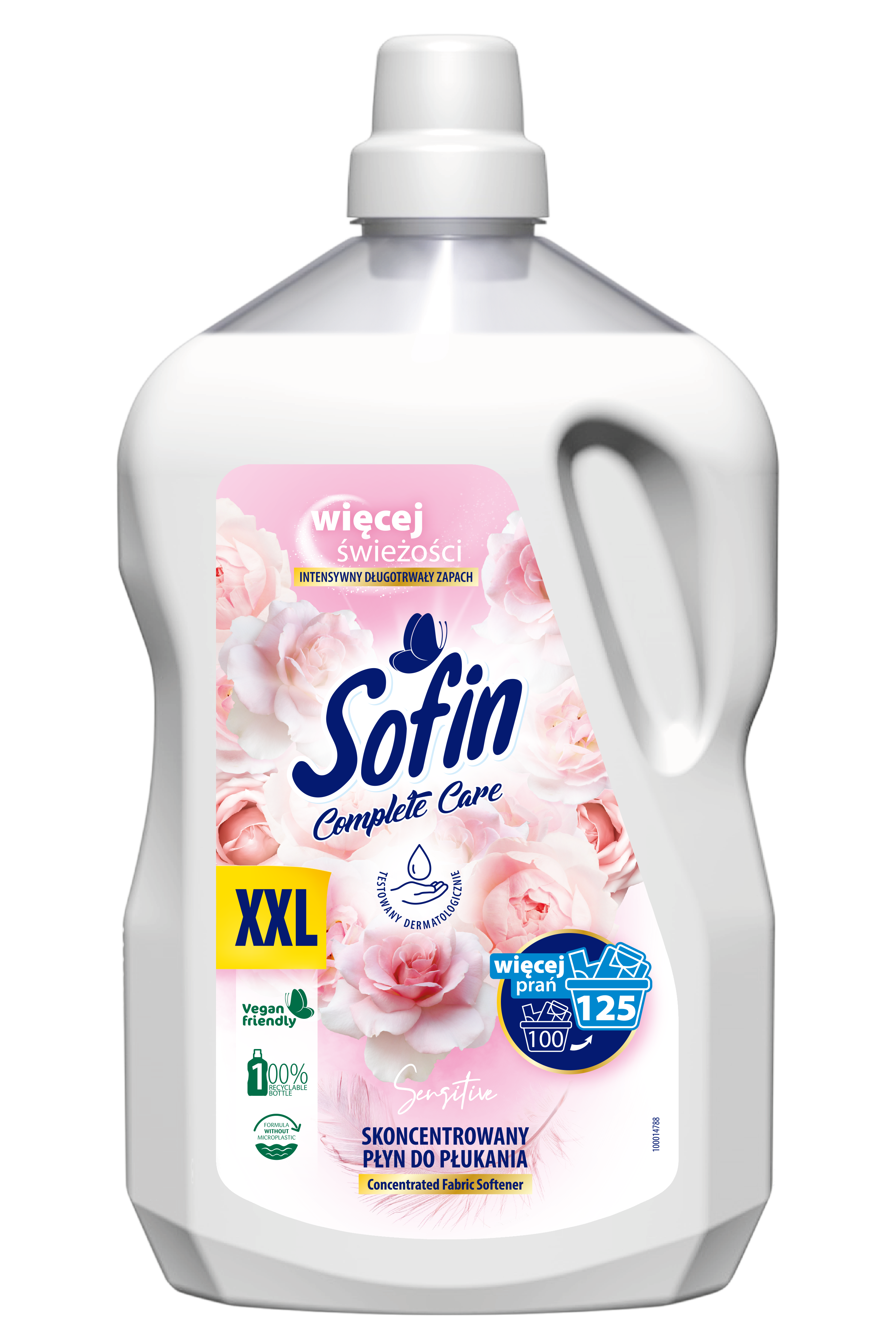 SOFIN Complete Care to skoncentrowane płyny do płukania w zupełnie nowej odsłonie, które zachwycą Ciebie i Twoich bliskich. Intensywne, piękne zapachy oparte na technologii kapsułek zapachowych, zapewnią Twoim ubraniom świeżość i miękkość aż do 3 miesięcy Skoncentrowany płyn do płukania w pojemności 2,5L = 100 płukania Atrakcyjny, długotrwały zapach Ochrona kolorów Ochrona tkanin Ekonomiczne, rodzinne opakowanie.