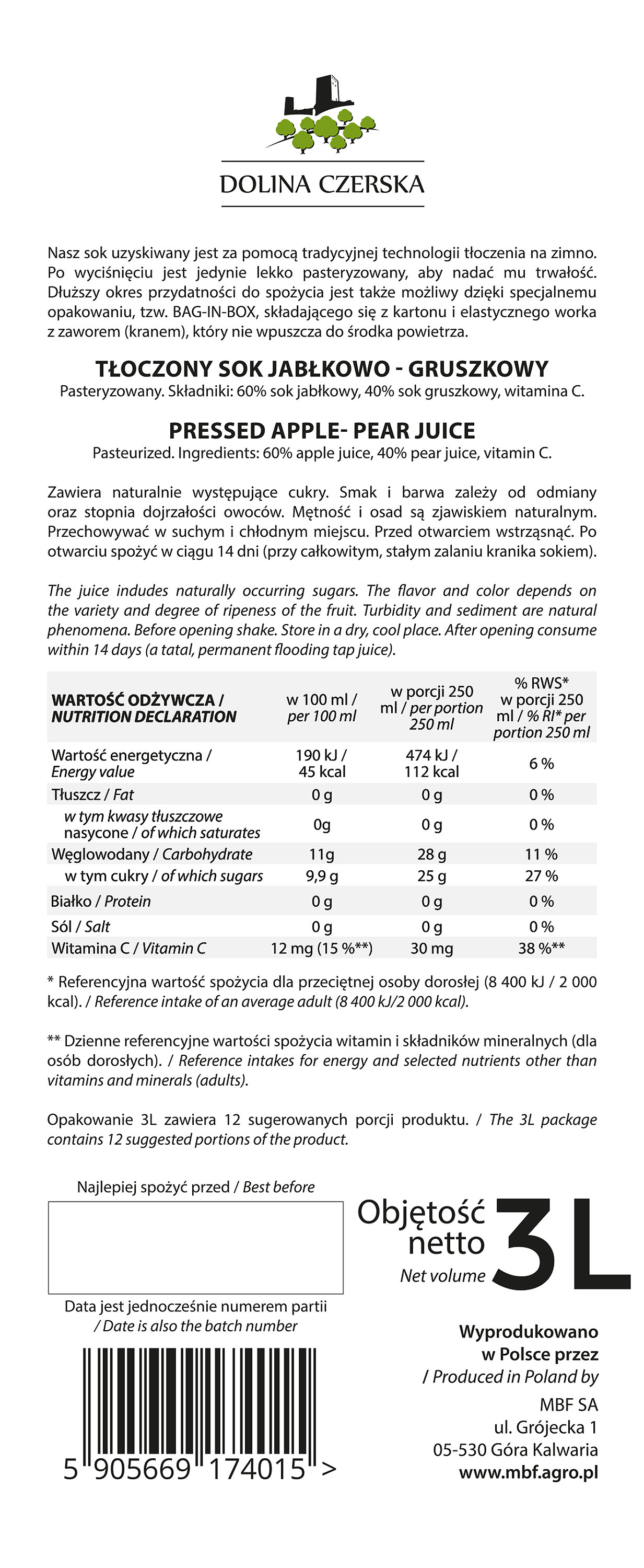 SkładnikiSok jabłkowy 60%, sok gruszkowy 40%, witamina c