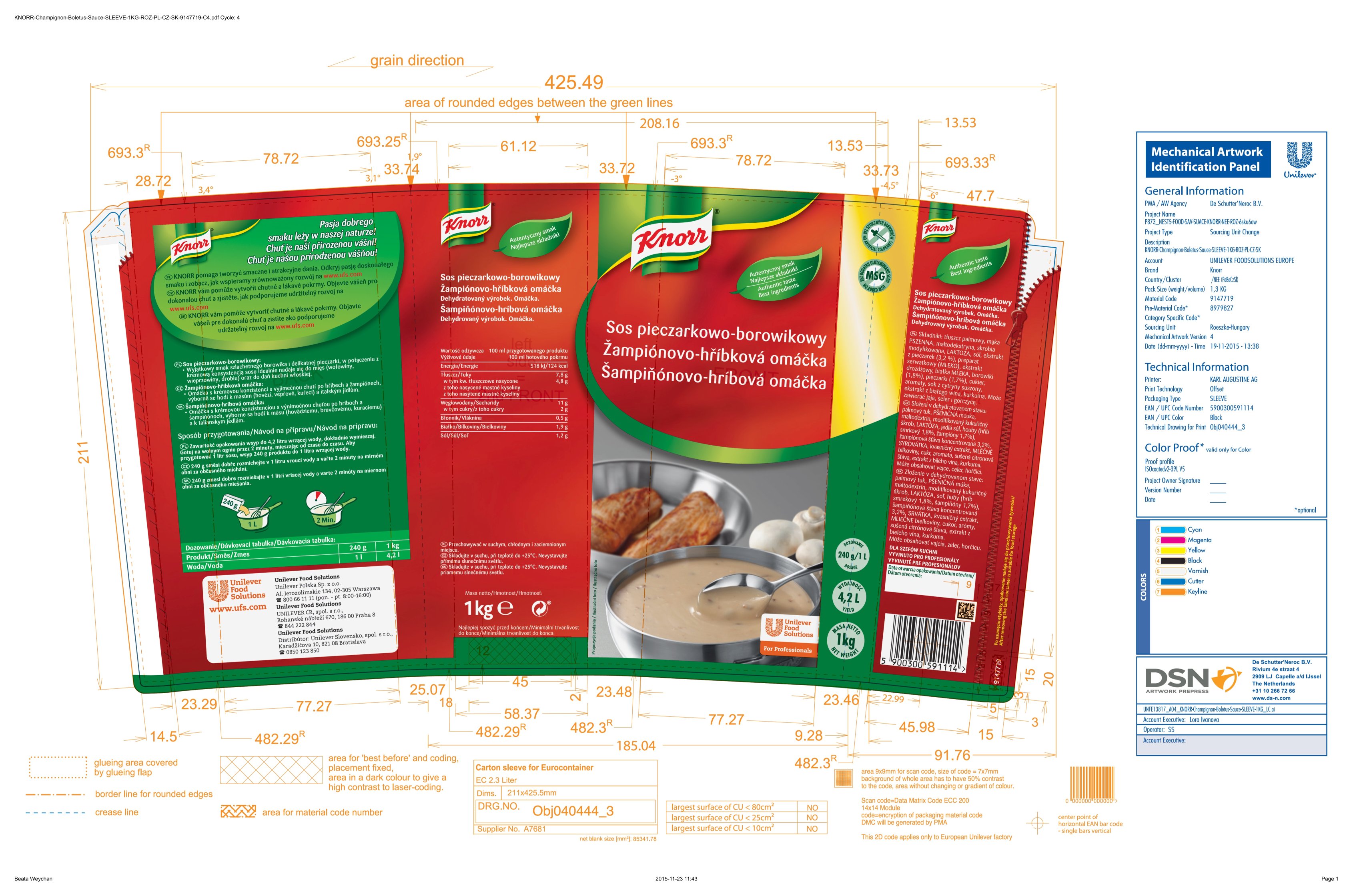 | Instrukcje dotyczące przygotowania | Zawartość opakowania wsyp do 4,2 litra wrzącej wody, dokładnie wymieszaj. gotuj na wolnym ogniu przez 2 minuty, mieszając od czasu do czasu. aby przygotować 1 litr sosu, wsyp 240 g produktu do 1 litra wrzącej wody. |