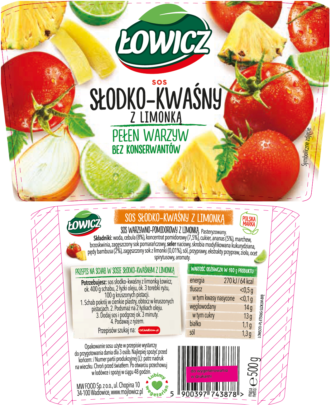 Sos słodko-kwaśny z limonką Łowicz 500 g