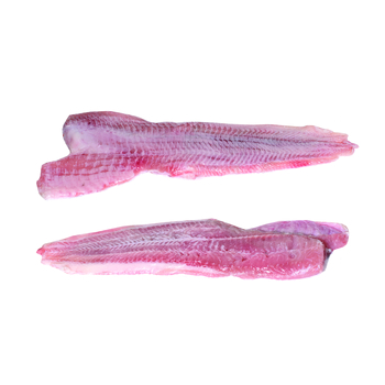 Sum poddany patroszeniu, bez głowy, przecięty na pół wzdłuż linii kręgosłupa, z usuniętymi płetwami, żebrami i kręgosłupem, odskórzony.