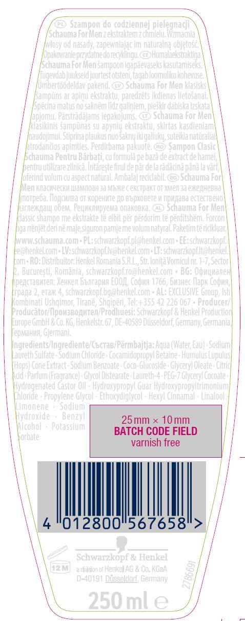 Szampon do codziennej pielęgnacji Schauma For Men z ekstraktem z chmielu. Wzmacnia włosy odnasady, zapewniając im objętość. Bez silikonów. Opakowanie przydatne do recyklingu.