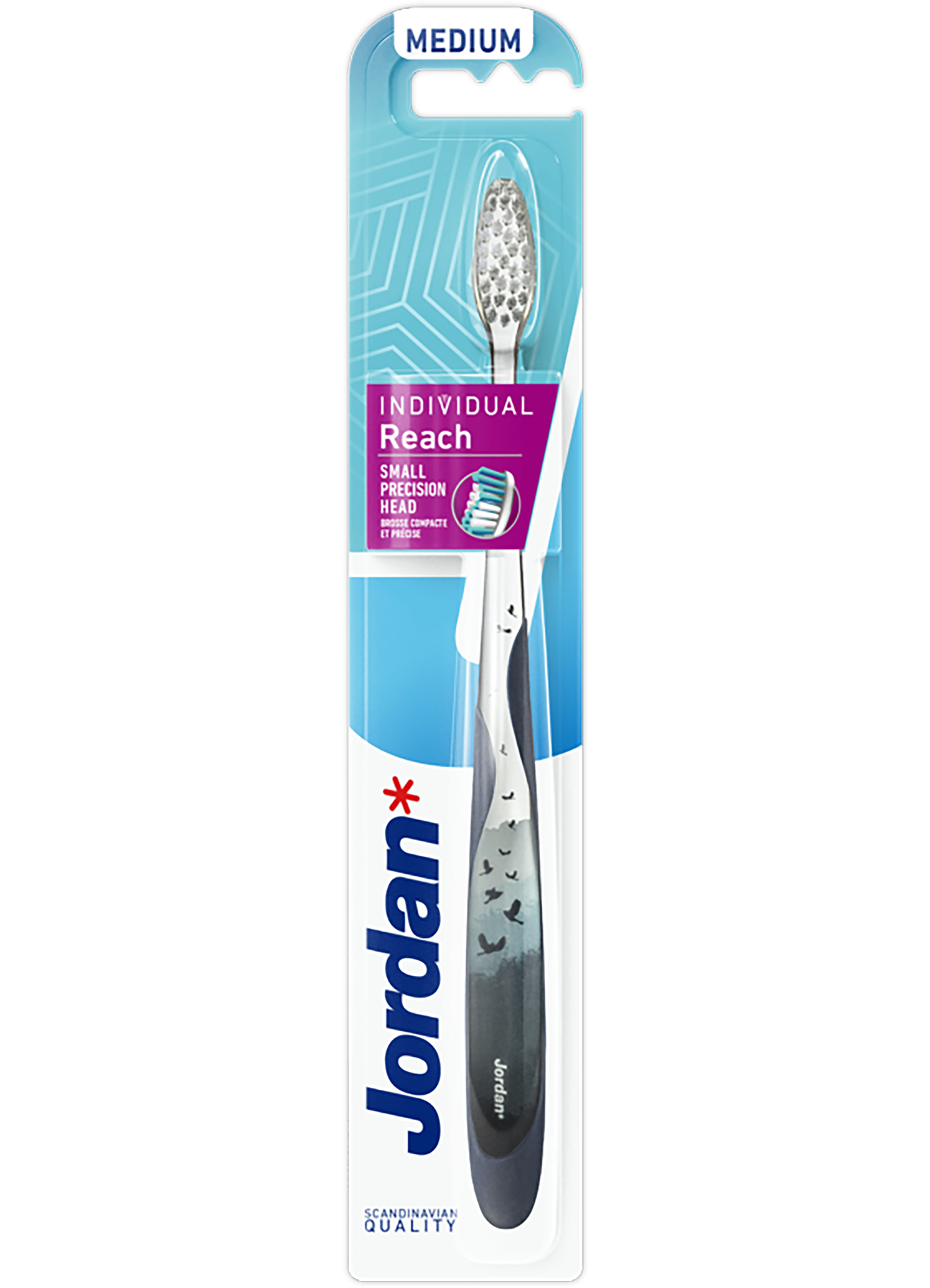 "Jordan Individual to unikalna linia szczoteczek do zębów, która łączy funkcjonalność z nowoczesnym, atrakcyjnym wyglądem. Dla osób, które czyszczą dokładnie ząb po zębie. • mała główka z wyprofilowanym włosiem dociera w każde miejsce • cienka, ergonomiczna rączka dostosowana jest do wygodnego trzymania w palcach".