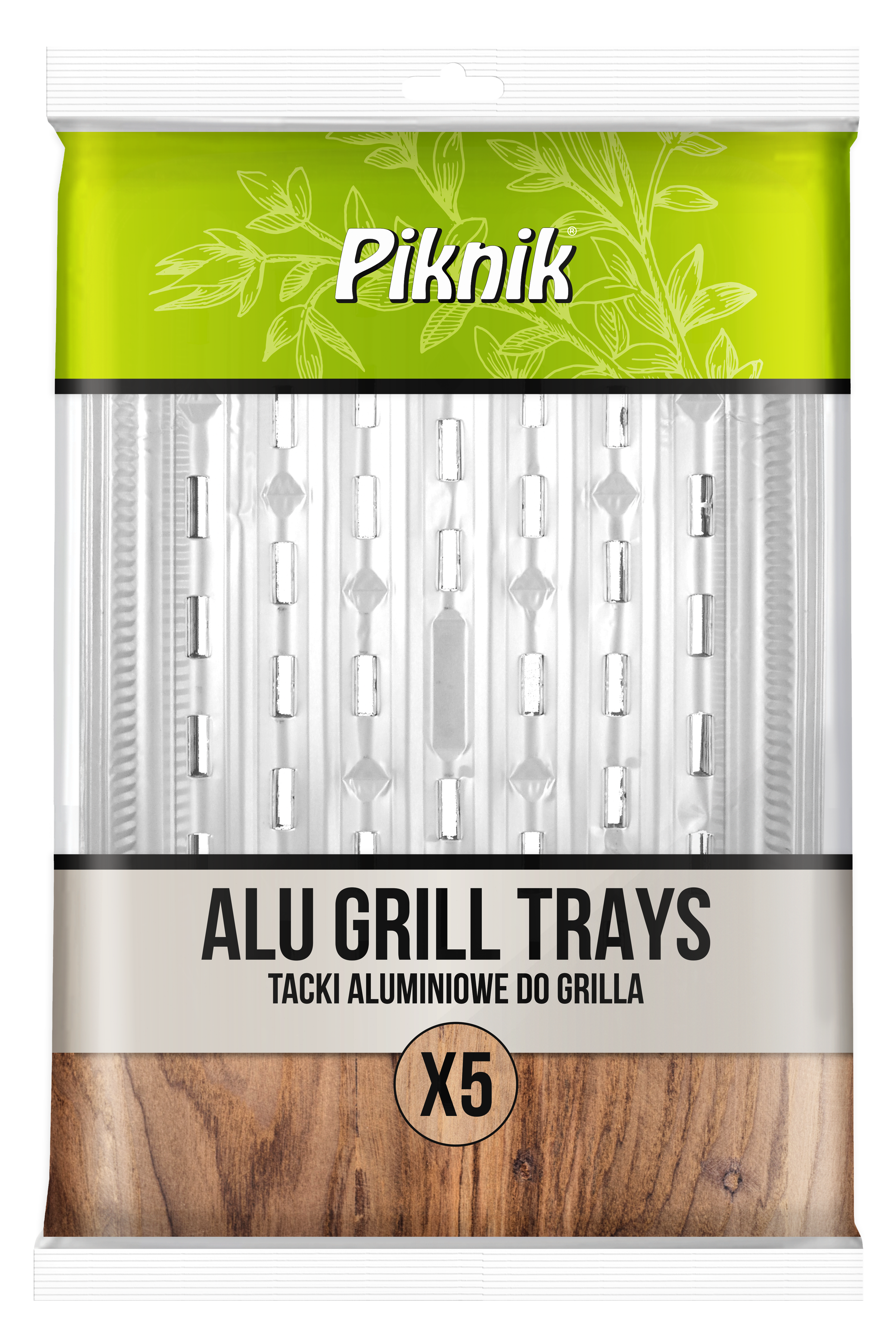 Tacki wykonane z aluminium przeznaczone do kontaktu z żywnością. Do zastosowania na grillu. Zapewniają higienę przyżądzanych potraw, ponieważ żywność nie styka się bezpośrednio z ogniem i rusztem.