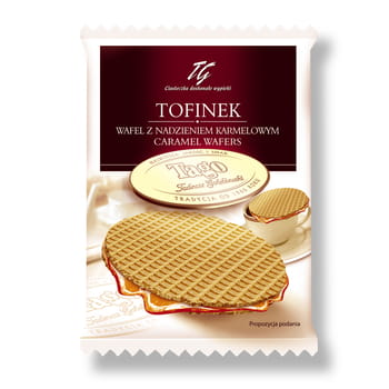 | Składniki | Syrop glukozowo-fruktozowy, mąka pszenna, cukier, masło, margaryna [oleje: rzepakowy, palmowy i słonecznikowy; emulgatory: mono- i diglicerydy kwasów tłuszczowych, estry kwasów tłuszczowych i poliglicerolu, lecytyny (z soi); substancja konserwująca: sorbinian potasu; regulator kwasowości: kwas cytrynowy; aromat, barwnik: karoteny], ekstrakt słodowy (jęczmienny), tłuszcz palmowy, serwatka w proszku (z mleka), mąka sojowa, jaja w proszku, substancja spulchniająca: węglany sodu; sól, przyprawy, emulgator: lecytyny ( z soi); aromat: toffi. Zawiera gluten, mleko, jaja i soję. Może zawierać orzeszki arachidowe, orzechy laskowe i nasiona sezamu. |