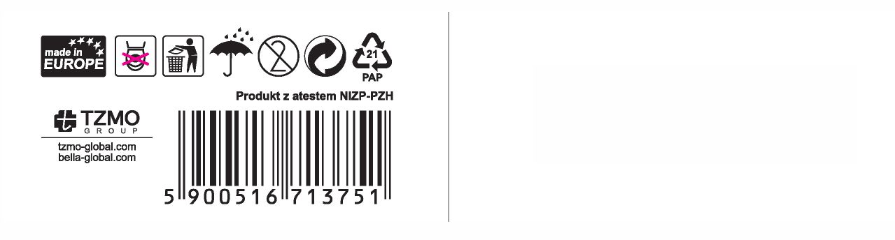 | Skład/Surowiec | Taśma chłonna wiskozowa 100%, włóknina, sznureczek, folia pp z nadrukiem |