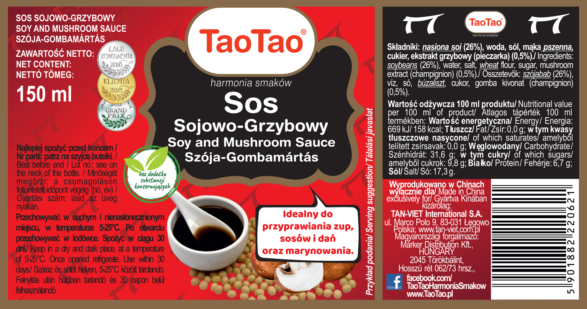 Sos sojowo-grzybowy TaoTao to doskonały dodatek do dań smażonych z makaronem i warzywami, jak również do potraw mięsnych. Jest znakomitym dodatkiem do marynat.