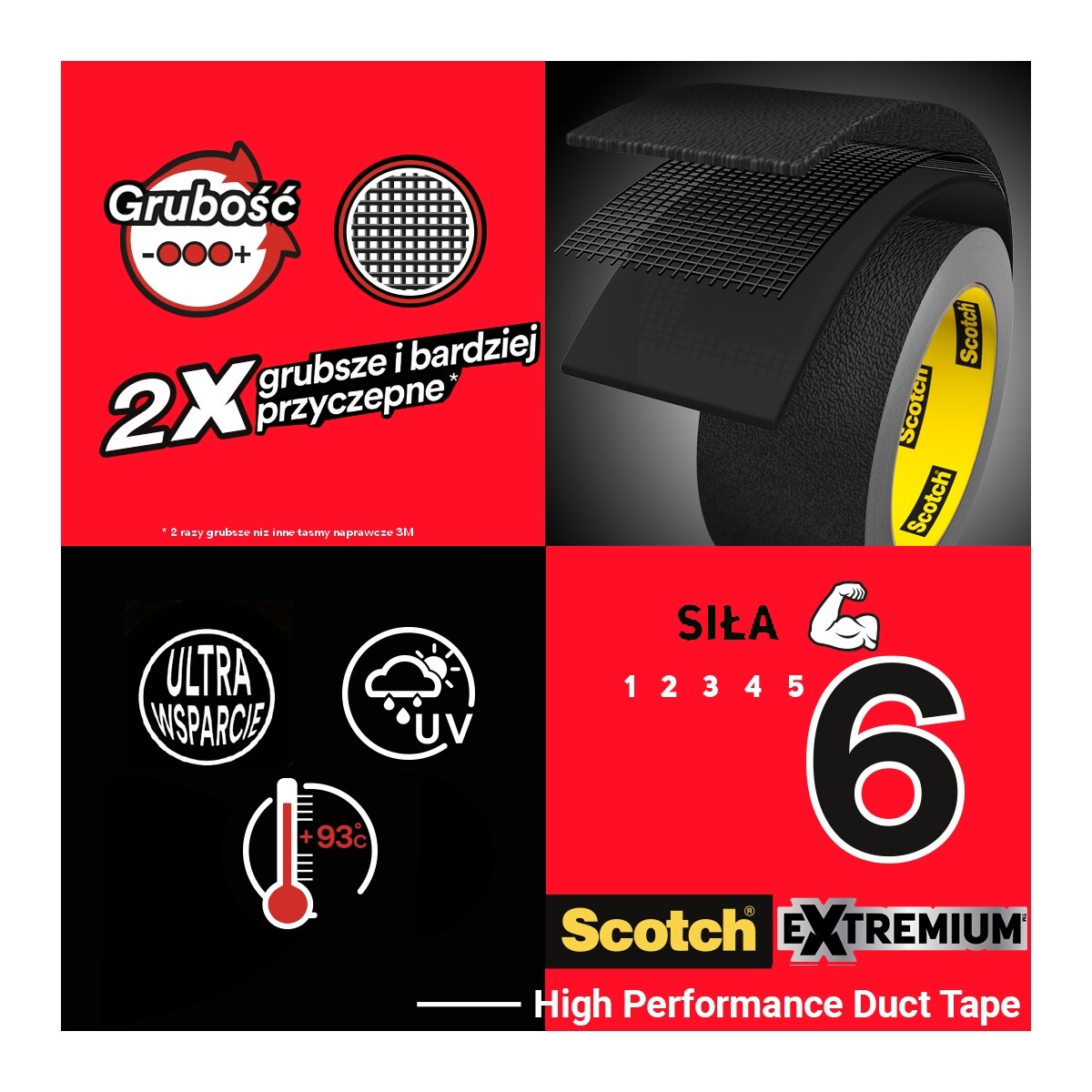 | Krótki opis marketingowy | " taśma naprawcza scotch® extremium™ ultra high performance jest dwukrotnie grubsza od innych taśm naprawczych scotch®, zapewniając maksymalna siła mocowania, do najcięższych napraw. " |