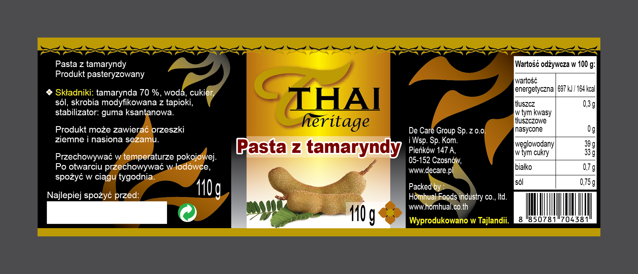 | Składniki | Tamarynda 70 %, woda, cukier, sól, skrobia modyfikowana z tapioki, stabilizator: guma ksantanowa |
