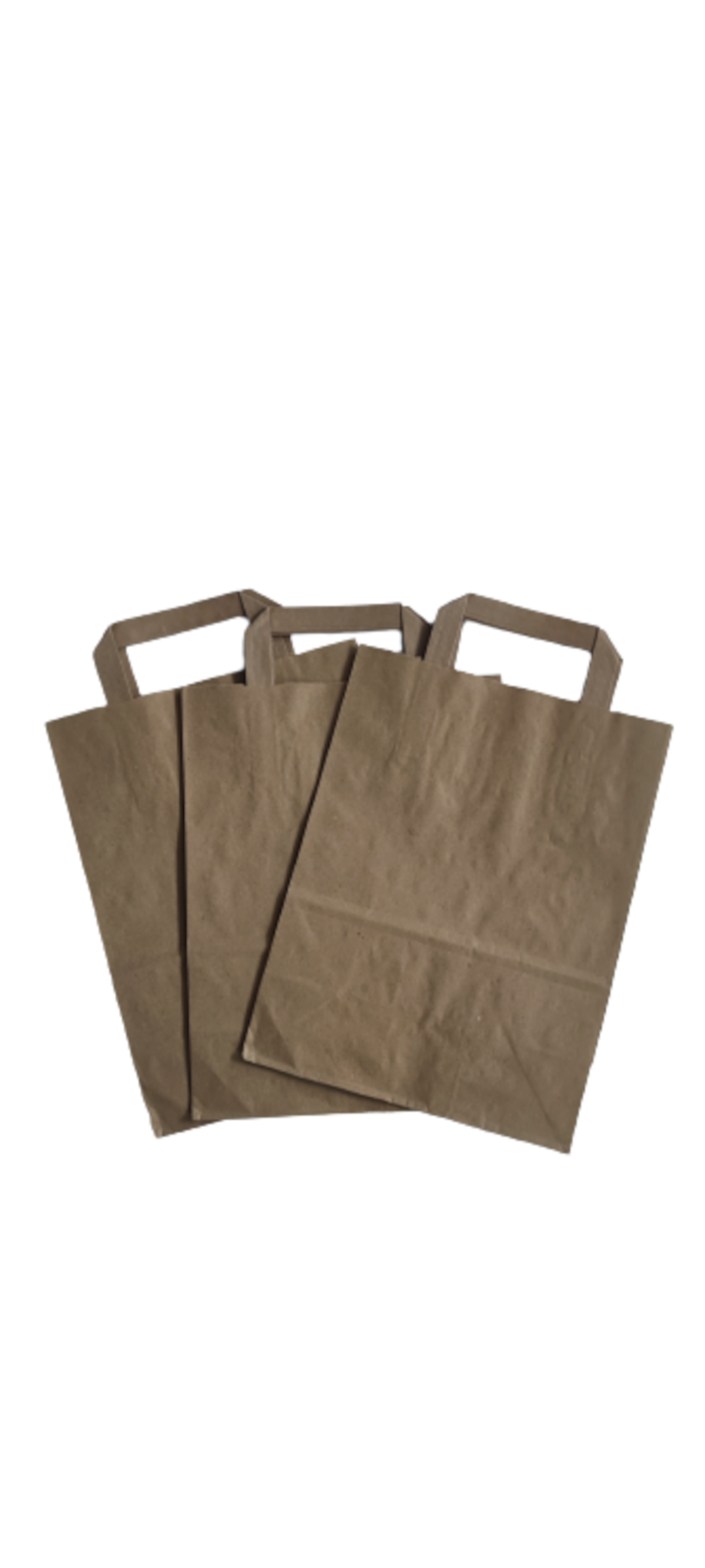 Torba cateringowa z uchwytem płaskim 22x11x28 mm. kpl. 25 szt. brązowa. Lekka , poręczna, uniwersalna.