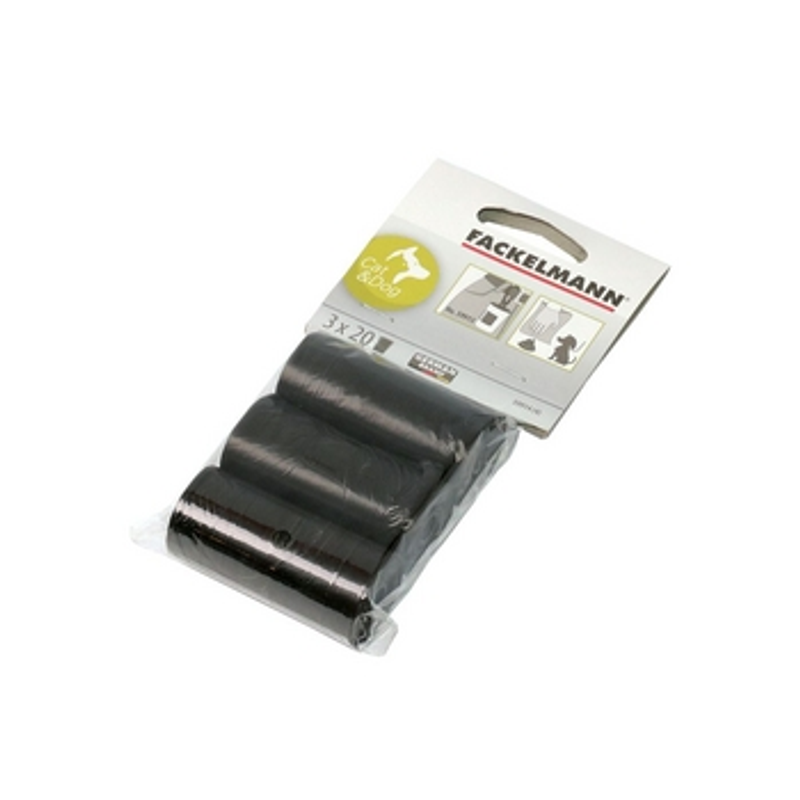 Woreczki na psie nieczystości 3 rolki po 20 sztuk. Wymiar 26x30 cm. Woreczki pasują do typowych dozowników oraz dozowników o nr katalogowym 59913.
