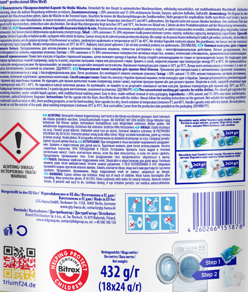• Triumf 18szt ultra weiss kapsułki do prania białych tkanin 2w1