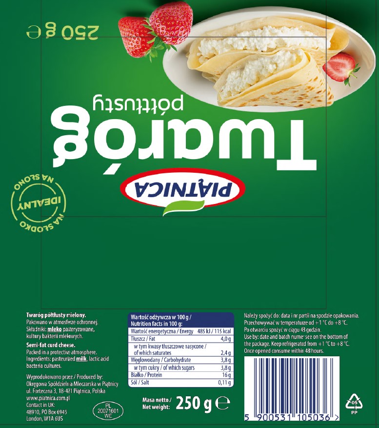 | Adres podmiotu wprowadzającego do obrotu | Nazwa firmy: okręgowa spółdzielnia mleczarska w piątnicy ulica i numer: forteczna 3 kod pocztowy i miasto: 18-421 piątnica pl |
