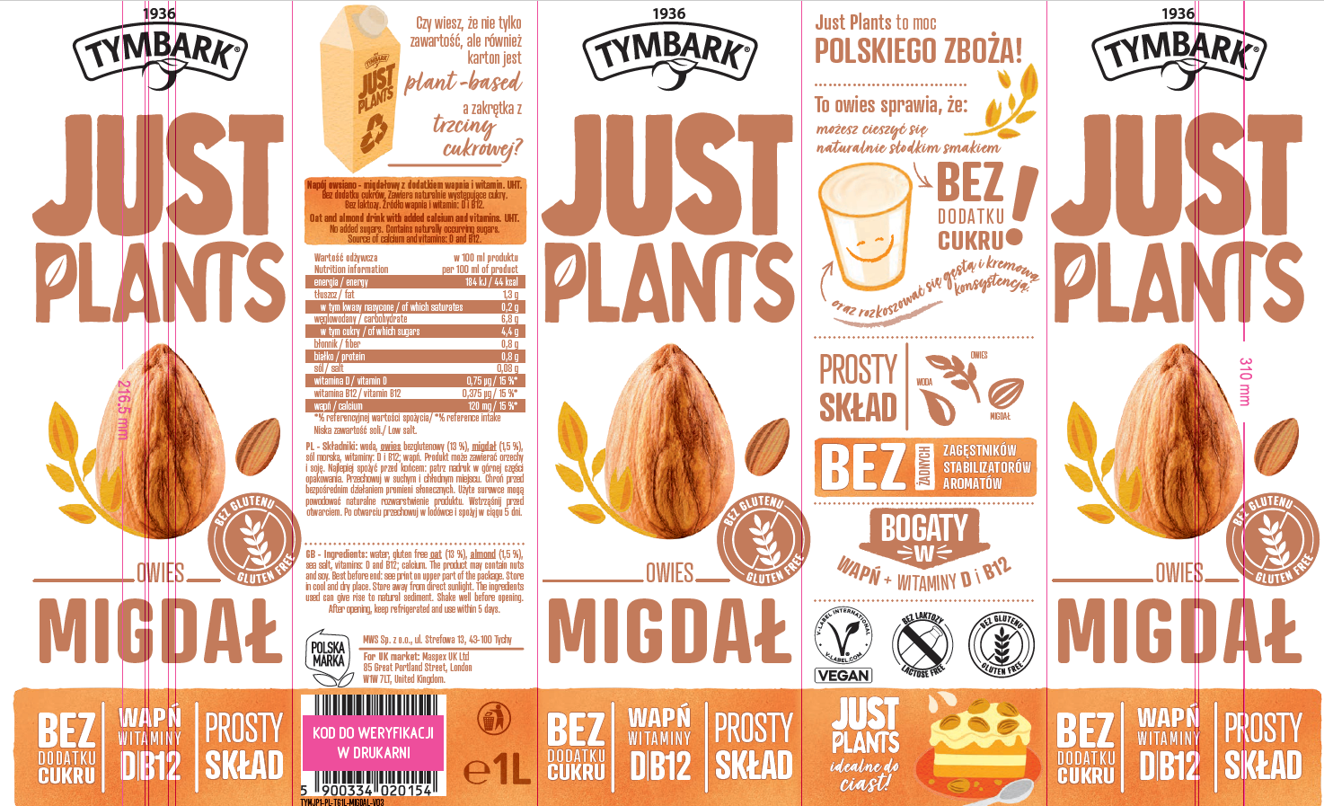 Tymbark Just Plants napój migdał-owsiany 1 l
