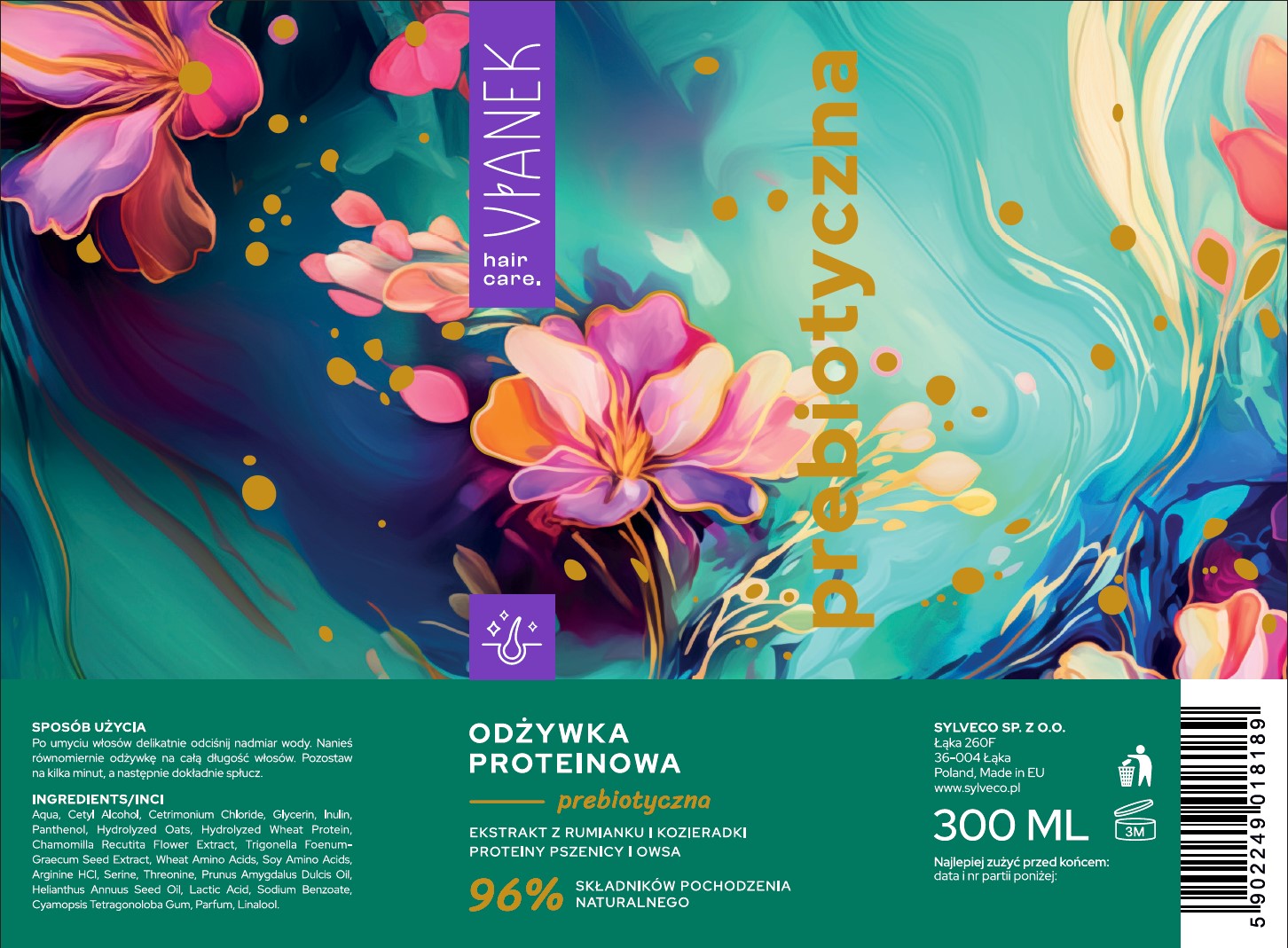 | Krótki opis marketingowy | Dzięki zastosowaniu inuliny, cennego prebiotyku pozyskiwanego z korzenia cykorii, odżywka intensywnie nawilża włosy i skutecznie wspiera odbudowę mikrobiomu skóry głowy, zachowując ją w świetnej kondycji i zapewniając odpowiednią równowagę. proteiny pszenicy i owsa wzmacniają włosy od wewnątrz, naprawiając mikrouszkodzenia oraz nadając im życia i objętości, co jest kluczowe dla osiągnięcia spektakularnych efektów wizualnych. ekstrakty z rumianku i kozieradki dostarczają włosom niezbędnej regeneracji, chronią przed utratą wilgoci, zwiększając ich elastyczność, miękkość i poprawiając ogólną kondycję. |