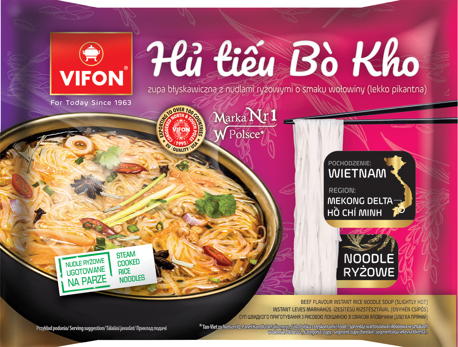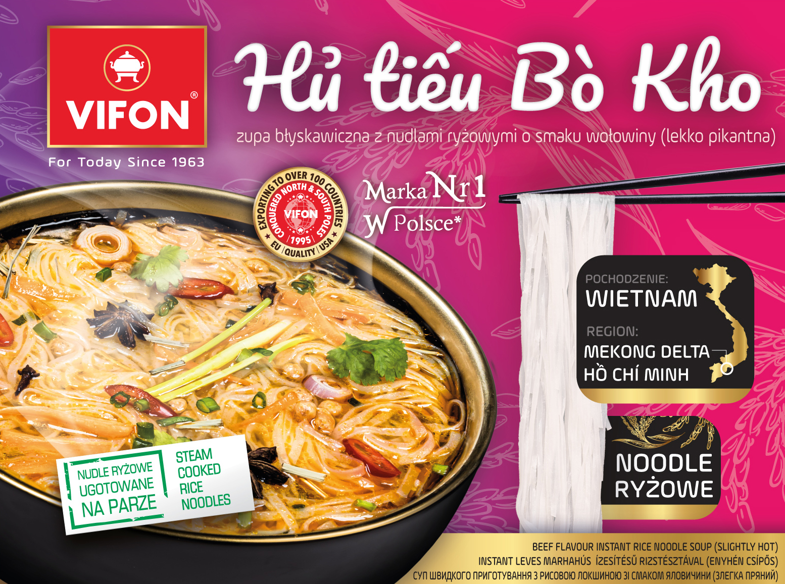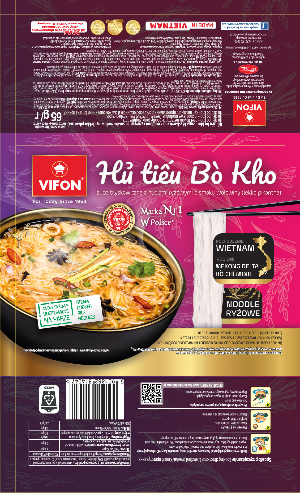 | Składniki | Składniki: nudle ryżowe (76,2%): skrobia ryżowa, cukier, sól, wzmacniacz smaku: glutaminian monosodowy; substancja zagęszczjąca: guma guar; baza zupy (15,4%): sól, cukier, wzmacniacze smaku: glutaminian monosodowy, guanylan disodowy, inozynian disodowy; suszone warzywa w zmiennych proporcjach (5%): marchew, szczypior, kolendra; teksturowane białko SOJOWE, maltodekstryna, mieszanka przypraw, aromat, pieprz, tapioka, ekstrakt drożdżowy, hydrolizowane białko SOJOWE, substancja zagęszczjąca: guma ksantanowa; czerwona szalotka (0,8%), chili (0,6%), trawa cytrynowa (0,6%), substancja przeciwzbrylająca: dwutlenek krzemu; saszetka z olejem (8,4%): rafinowany olej palmowy, prażona czerwona szalotka, aromaty, barwnik: ekstrakt z papryki; przeciwutleniacz: mieszanina tokoferoli. |