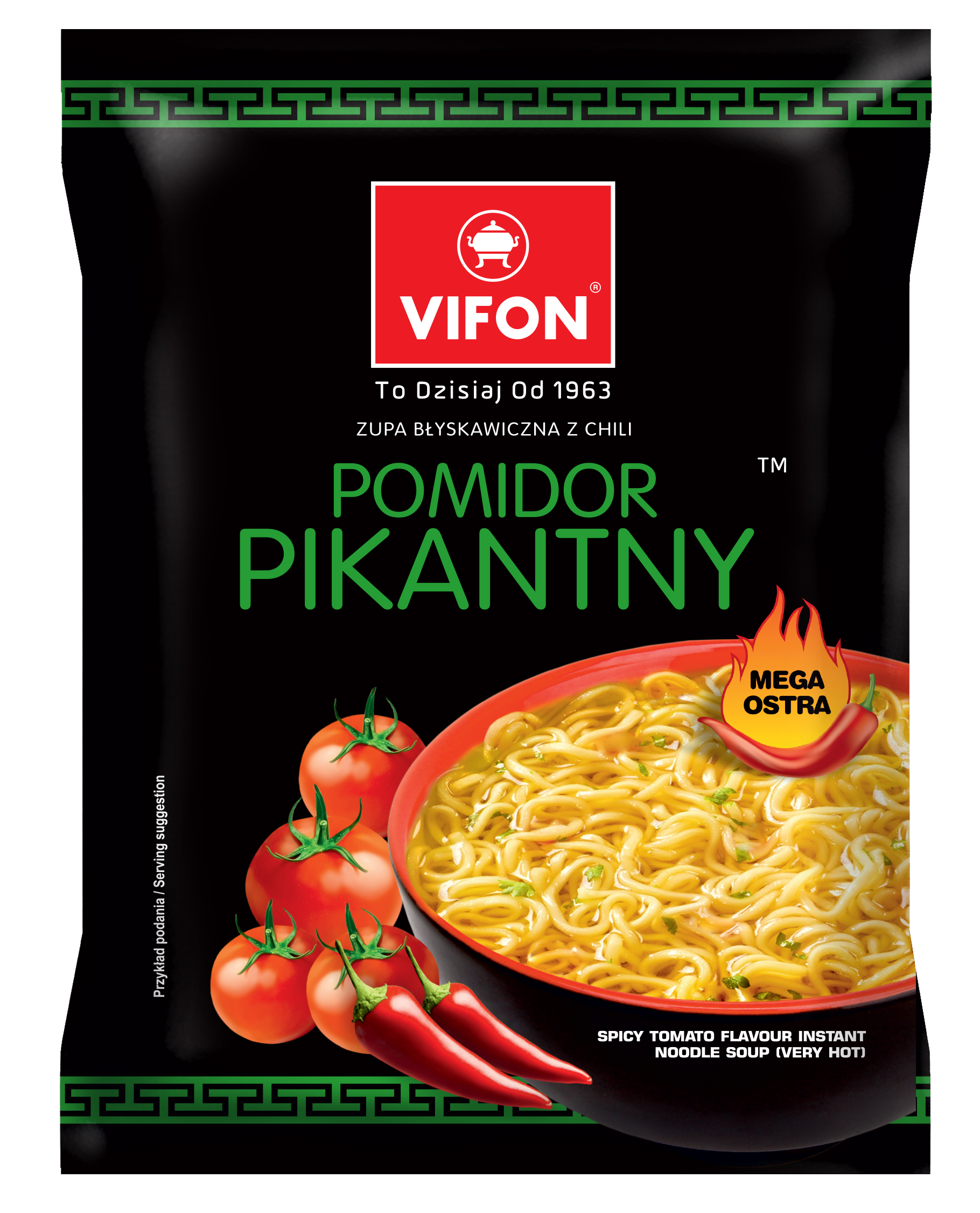 | Składniki | kluski (86,4%): mąka pszenna, tłuszcz palmowy, tapioka, sól, skrobia, cukier, stabilizatory: trifosforany, guma guar; substancje spulchniające: węglany potasu, węglany sodu; kurkuma; dodatki smakowe (13,6%): pomidor w proszku (40,6%), sól, cukier, wzmacniacze smaku: glutaminian monosodowy, guanylan disodowy, inozynian disodowy; ekstrakt drożdżowy w proszku, aromat, maltodekstryna, skrobia z tapioki, chili (2,1%), regulator kwasowości: kwas cytrynowy; suszone warzywa w zmiennych proporcjach (0,6%): szczypiorek, seler; substancja przeciwzbrylająca: E 551; hydrolizat białka sojowego, czosnek (0,5%), ekstrakt z chili (0,32%), burak w proszku, barwnik: ekstrakt z papryki. |