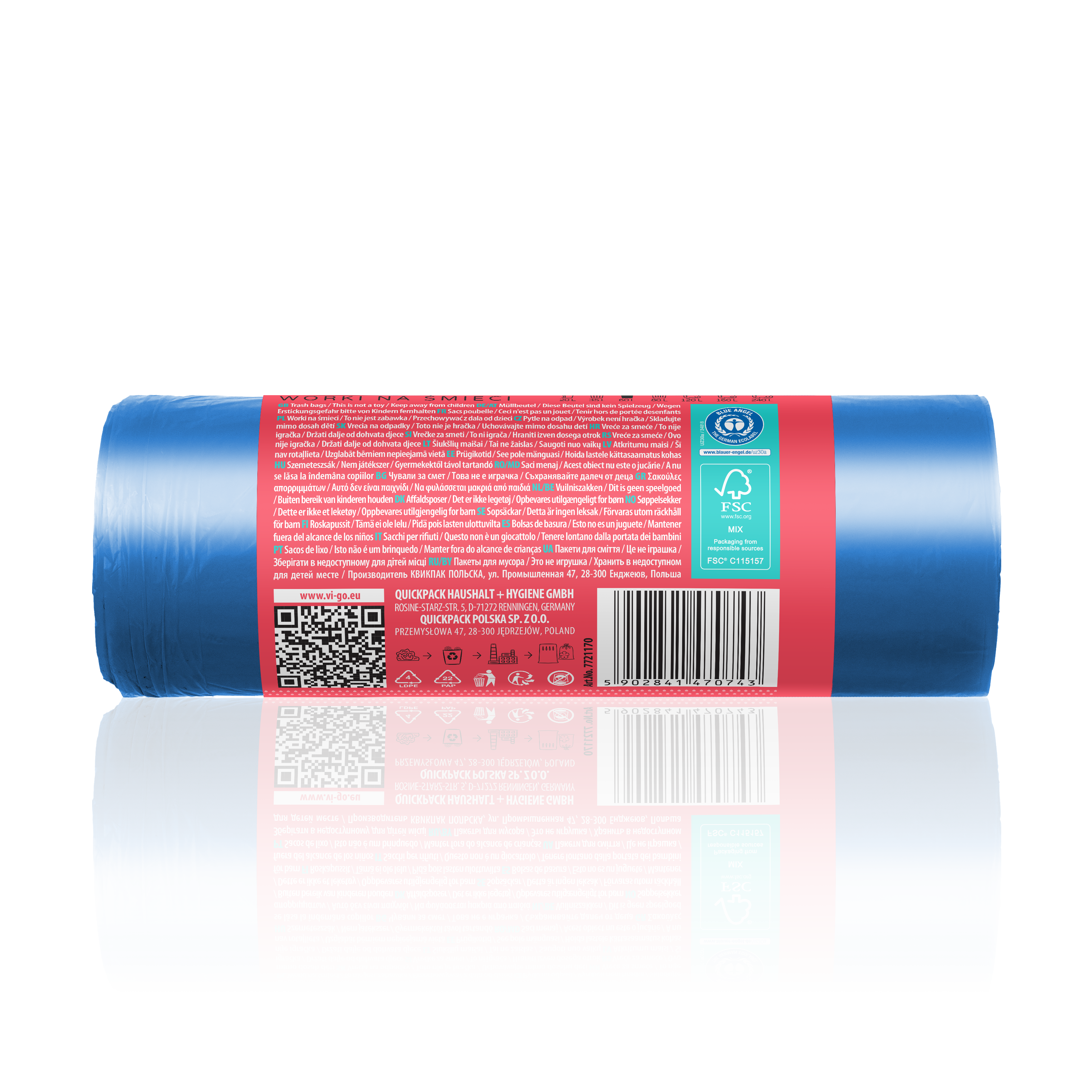 Worki na śmieci do pakowania i segregowania odpadów papierowych. Do niebieskiego worka na odpady możemy wrzucić: opakowania z papieru, kartonu, torby i worki papierowe, gazety i czasopisma, katalogi i ulotki, zeszyty i książki, papier pakowy, wydruki na papierze biurowym. Worki do segregacji odpadów są wykonane z grubej folii z regranulatu, dzięki czemu są wytrzymałe na obciążenia i przypadkowe rozdarcia. Mają mocny zgrzew typu gwiazda, co oznacza że nie przeciekają i świetnie dopasowują się do okrągłych pojemników na odpady. Idealnie sprawdzają się w domu, biurach, miejscach publicznych.