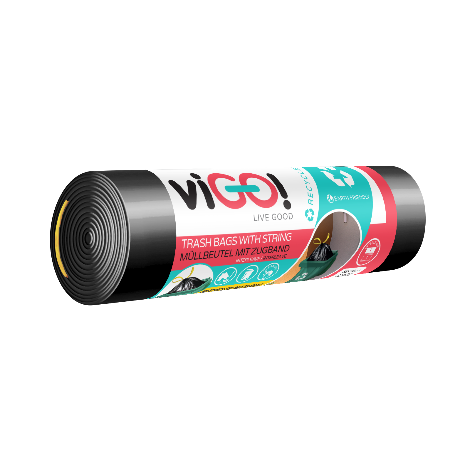 Duże opakowanie wystarczy na dłużej. viGO! Eko Worki LD z taśmą wykonane zostały w 100% z tworzywa pochodzącego z recyklingu*. Zostały wyprodukowane w nowej technologii 3-warstwowej folii z embossingiem umożliwiającej produkcję worków cieńszych i lżejszych, które jednocześnie są o wiele mocniejsze i bardziej elastyczne oraz posiadają podwyższoną odporność na rozciąganie i otarcia. Wykorzystana w nich folia może być ponownie przetworzona. Są wygodne w użytkowaniu oraz przyjazne dla środowiska. Doskonale wpisują się w nowe trendy, w których kolory oraz zapach coraz częściej nie są postrzegane jedynie jako dodatkowy benefit, ale są cechami poszukiwanymi i determinującymi decyzje o zakupie produktu: niebieskie o zapachu lawendy oraz zielone o zapachu limonki. Zastosowana w systemie zamykania taśma, umożliwia pełne wykorzystanie pojemności worka oraz jego szczelne zamknięcie. Worki z unikatowym systemem interleave. Dzięki niemu wystarczy odwijać jeden worek za drugim – bez konieczności odrywania ich od siebie. * z wyłączeniem taśmy.