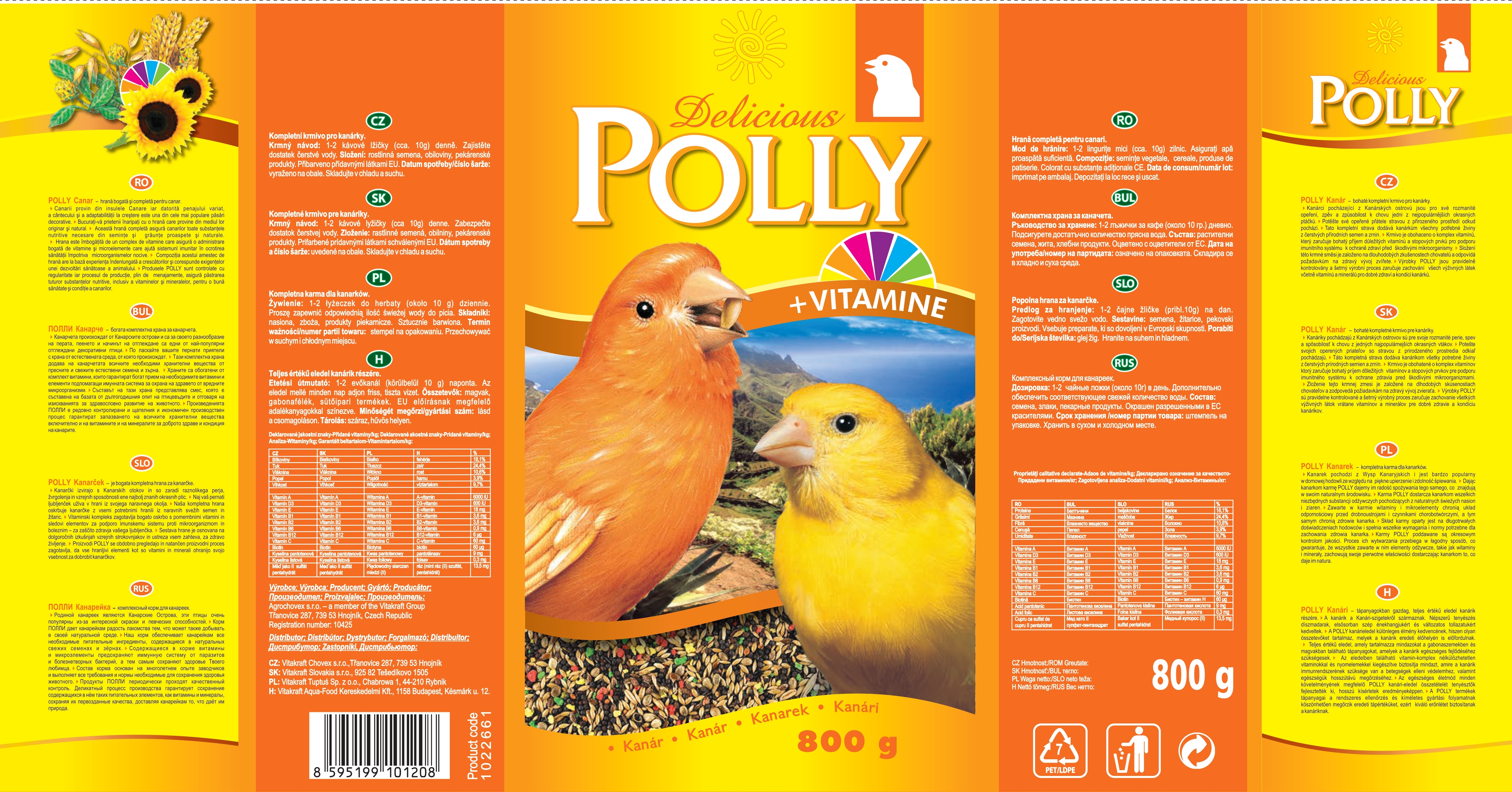 Karma pełnoporcjowa dla kanarków. Kanarek pochodzi z Wysp Kanaryjskich i jest bardzo popularny w domowej hodowli ze względu na piękne upierzenie i zdolność śpiewania. Podając kanarkom karmę POLLY dajemy im radość spożywania tego samego, co znajdują w swoim środowisku. Karma POLLY dostarcza wszelkich niezbędnych substancji odżywczych pochodzących z świeżych nasion i ziaren. Zawarte w karmie witaminy i mikroelementy chronią układ odpornościowy przed drobnoustrojami i czynnikami chorobotwórczymi, a tym samym chronią zdrowie kanarka. Skład karmy oparty jest na długotrwałych doświadczeniach hodowców i spełnia wszelkie wymagania i normy potrzebne do zachowania zdrowia. Karmy POLLY poddawane są okresowym kontrolom jakości. Proces ich wytwarzania przebiega w łagodny sposób, co gwarantuje, że wszystkie zawarte w nim elementy odżywcze, takie jak witaminy i minerały, zachowują swoje pierwotne właściwości dostarczając kanarkom to, co daje im natura.