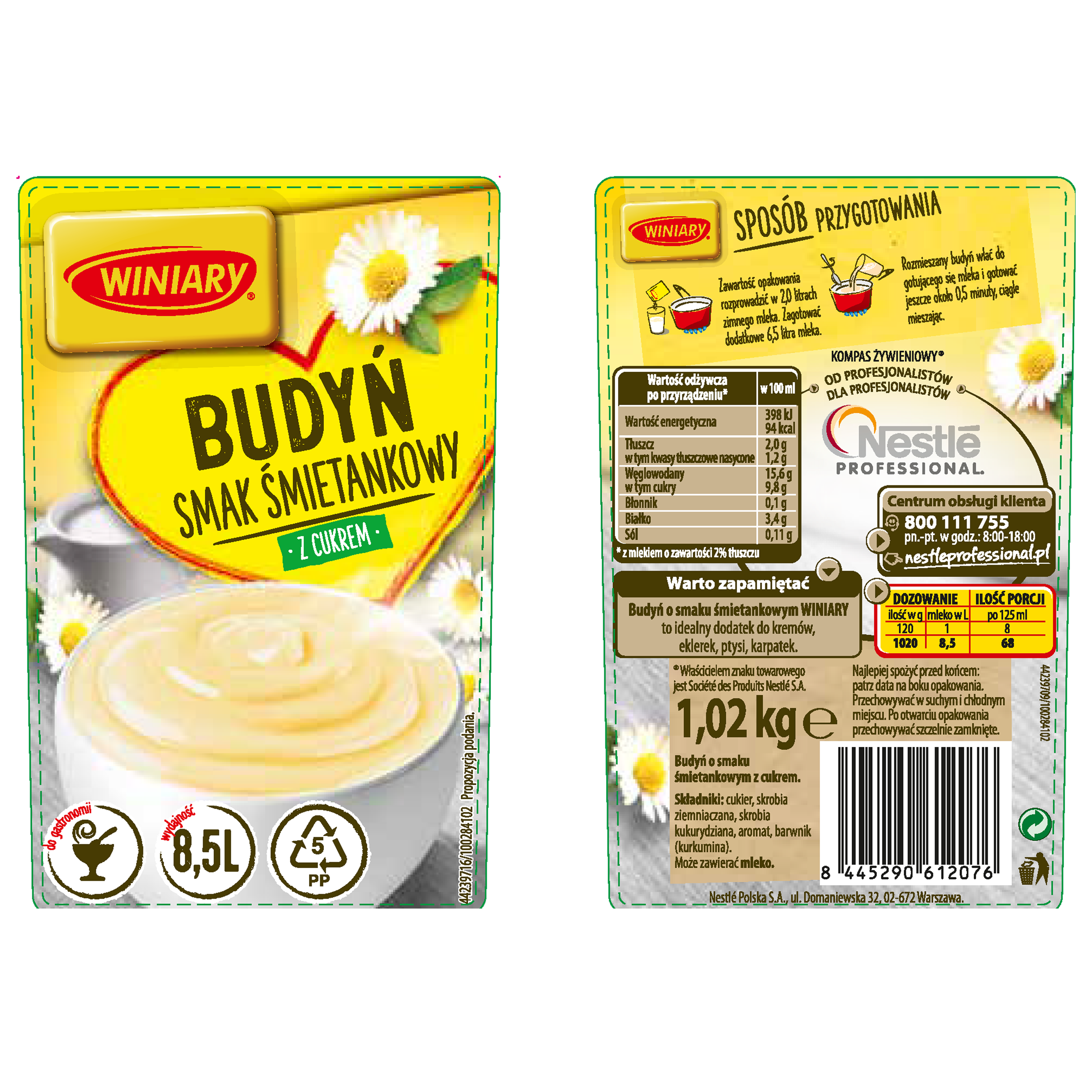 Zawartość opakowania rozprowadzić w 2,0 litrach zimnego mleka. zagotować dodatkowe 6,5 litra mleka. rozmieszany budyń wlać do gotującego się mleka i gotować jeszcze około 0,5 minuty, ciągle mieszając.