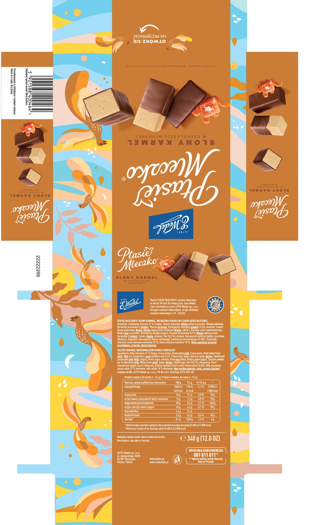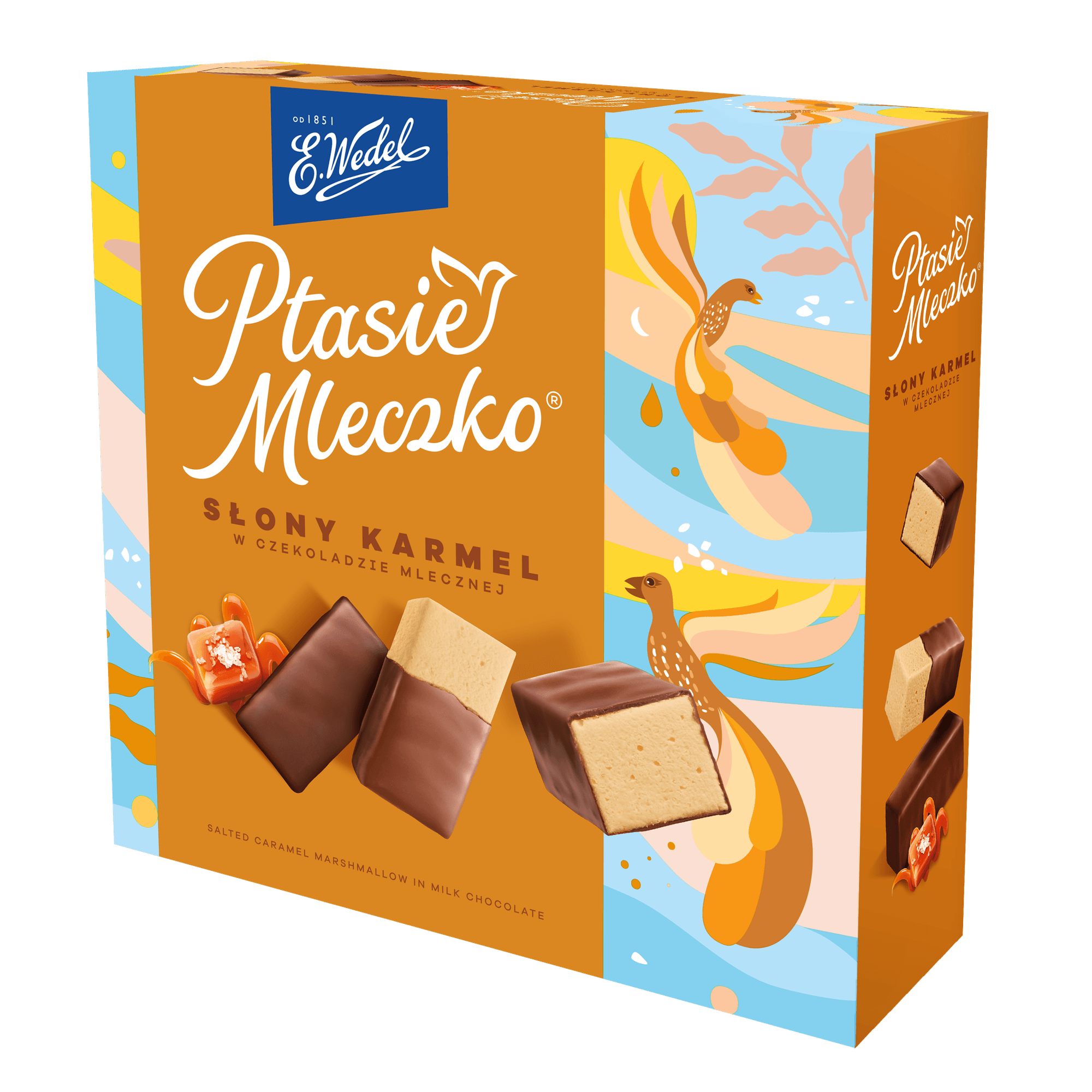 Wyobraź sobie idealnie złocisty, pyszny karmel z przełamującą słodycz słoną nutą. Znajdziesz go teraz w postaci lekkiej, delikatnej pianki oblanej wedlowską czekoladą mleczną! Zaskakujące, slodko-słone połączenie.