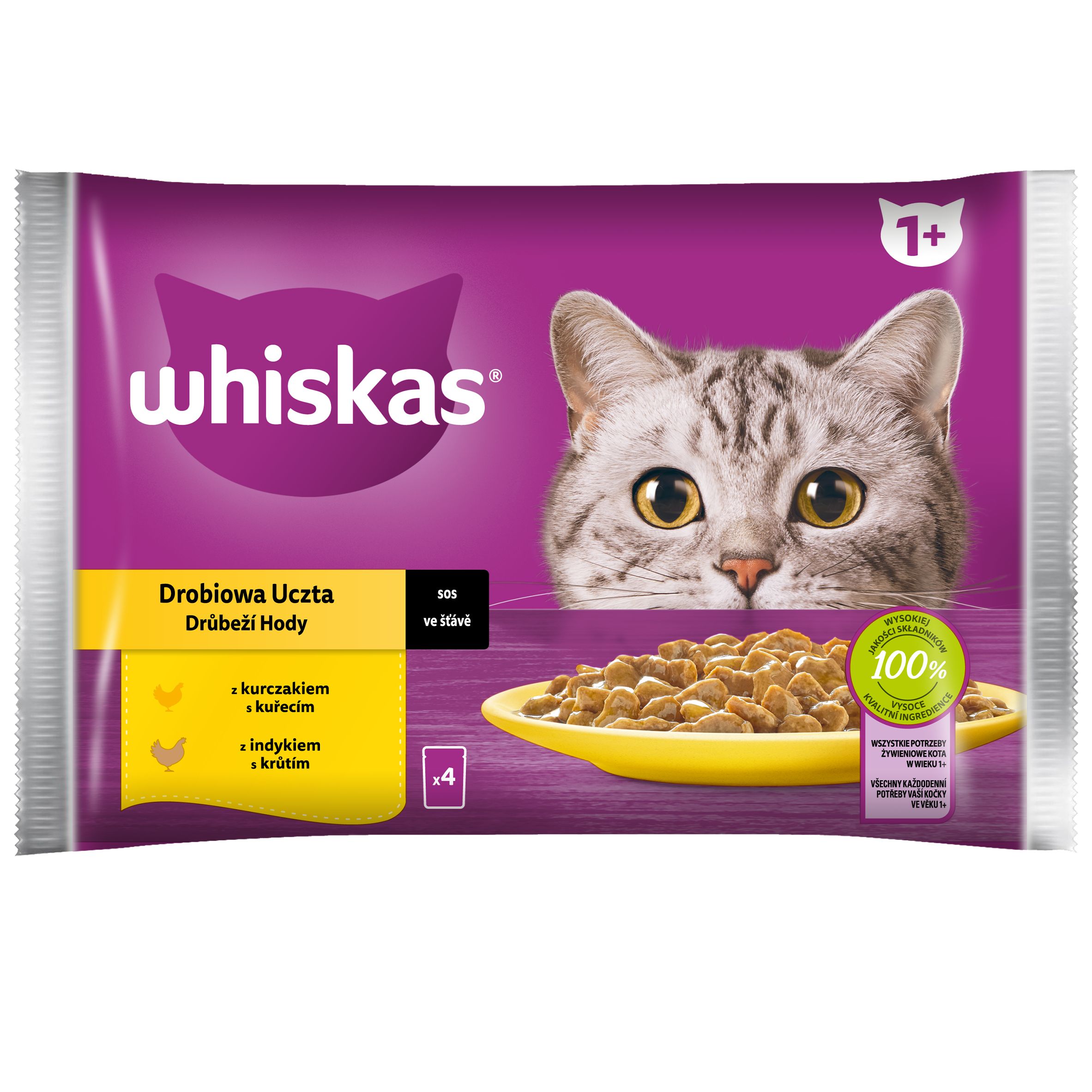 • Whiskas drobiowa uczta 1+ sos z kurczakiem i z indykiem 340 g (4x85 g)
