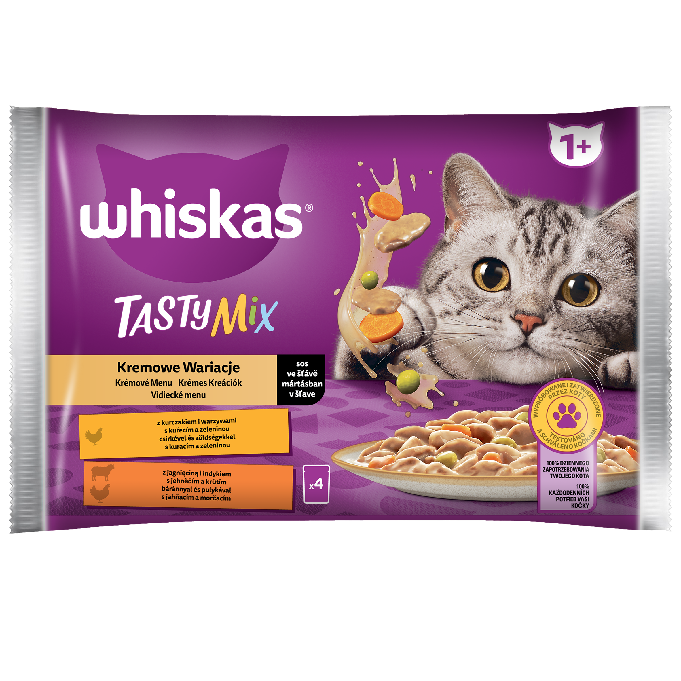 | Skład | Z kurczakiem i warzywami: mięso i produkty pochodzenia zwierzęcego (34%, w tym 4% kurczaka w kawałkach*), oleje i tłuszcze, produkty pochodzenia roślinnego, warzywa (w tym mieszanka suszonego groszku i marchewki 1%, co odpowiada zawartości mieszanki groszku i marchewki 4%), substancje mineralne, roślinne ekstrakty białkowe, cukry, mleko i produkty mleczne. *kawałki zwykle stanowią 40% produktu. z jagnięciną i indykiem: mięso i produkty pochodzenia zwierzęcego (34%, w tym 4% jagnięciny i 4% indyka w kawałkach*), oleje i tłuszcze, produkty pochodzenia roślinnego, substancje mineralne, roślinne ekstrakty białkowe, cukry, mleko i produkty mleczne. *kawałki zwykle stanowią 40% produktu. składniki analityczne (%): białko: 7.0; zawartość tłuszczu: 5.2; materia nieorganiczna: 1.6; włókno surowe: 0.25; wilgotność: 83.5; wapń: 0.30; fosfor: 0.22. dodatki/1kg: dodatki dietetyczne: witamina b₁: 21.0 mg, witamina b₂: 1.1 mg, witamina b₆: 3.5 mg, witamina d₃: 200 iu, tauryna: 750 mg, miedź (pięciowodny siarczanu miedzi(ii)): 1.2 mg, jod (jodan wapnia, bezwodny): 0.35 mg, żelazo (siarczan żelaza (ii), jednowodny): 17.5 mg, mangan (siarczan manganawy, jednowodny): 3.5 mg, cynk (siarczan cynku, jednowodny): 16.2 mg. |