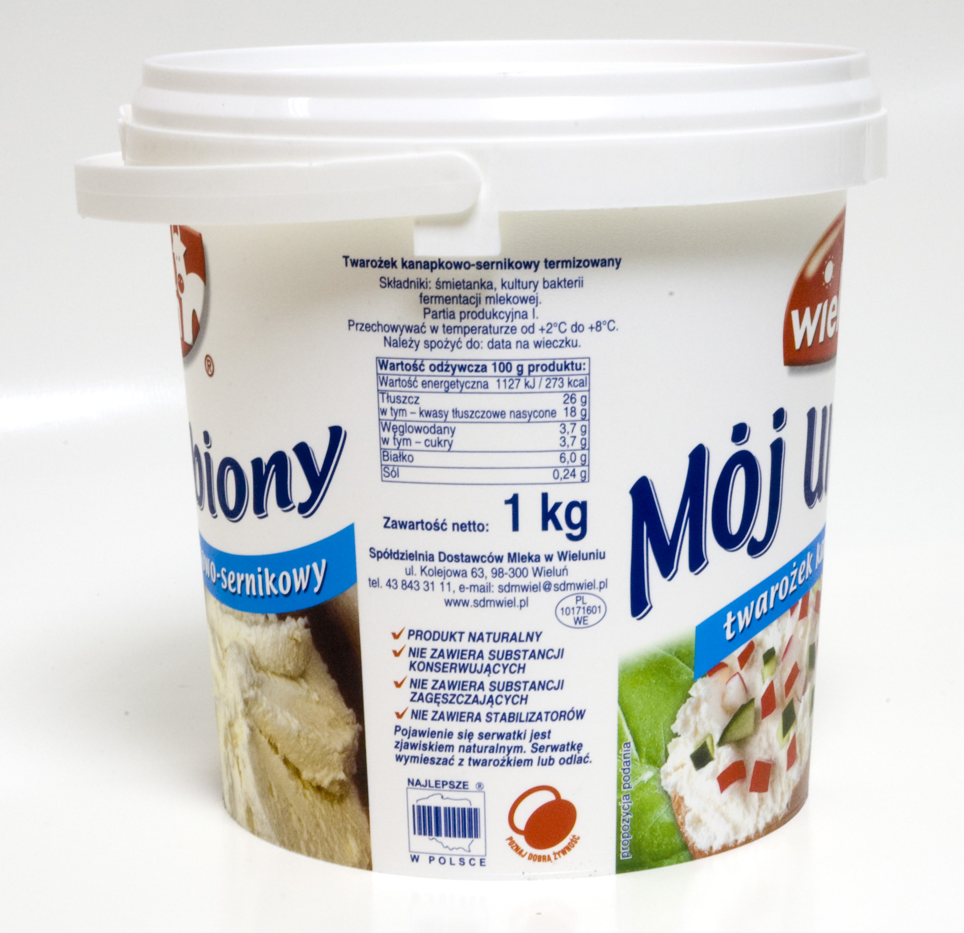 | Ocena organoleptyczna | produkt.Nie zawiera substancji zagęszczających.Nie zawiera stabilizatorów.Pojawienie się serwatki jest zjawiskiem .Serwatkę wymieszać z twarożkiem lub odlać. |