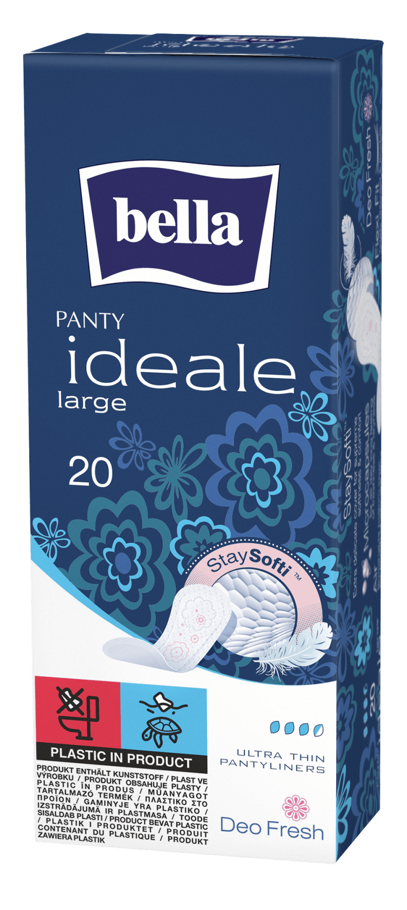 Ultracienka wkładka higieniczna Bella Ideale została stworzona z myślą, aby zapewniać kobiecie wygodę i bezpieczeństwo każdego dnia. Innowacyjne pokrycie StaySofti i wyjątkowo delikatna struktura zapewniają najwyższy poziom poczucia miękkości i komfortu. Wersja Large o wydłużonym kształcie gwarantuje jeszcze wyższą ochronę. Unikalne cechy produktu: - pokrycie StaySofti – o wyjątkowo delikatnej strukturze połączonych włóknin sprawia, że wkładka jest niezwykle miękka i przyjazna dla skóry, - mikrokapsułki – szybko i skutecznie wiążą wilgoć wewnątrz wkładki, pozostawiając jej powierzchnię suchą; technologia mikrokapsułek hamuje również namnażanie się bakterii i neutralizuje nieprzyjemne zapachy, - wysoka oddychalność AIR - oddychająca warstwa dolna, umożliwia swobodną termoregulację, pomagając w utrzymaniu odpowiedniej higieny stref intymnych i zapobiegając powstawaniu podrażnień, - system Flexi fit – gwarantuje wyjątkową elastyczność wkładki, dzięki czemu idealnie dopasowuje się ona to każdego rodzaju bielizny i staje się niewyczuwalna – pozwala na swobodne realizowanie wszystkich codziennych aktywności bez uczucia dyskomfortu.