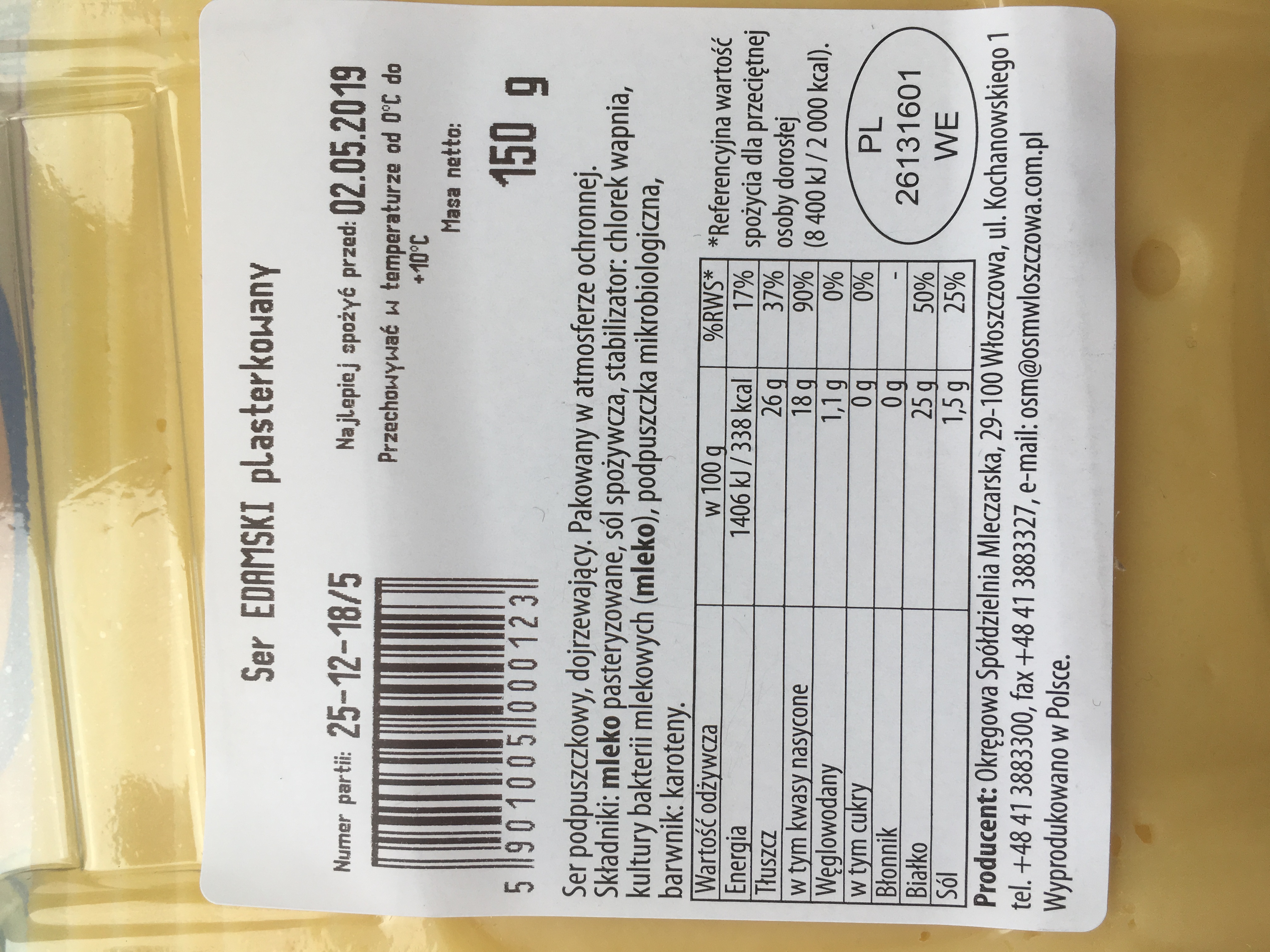 | Kraj pochodzenia głównego składnika | Polska |