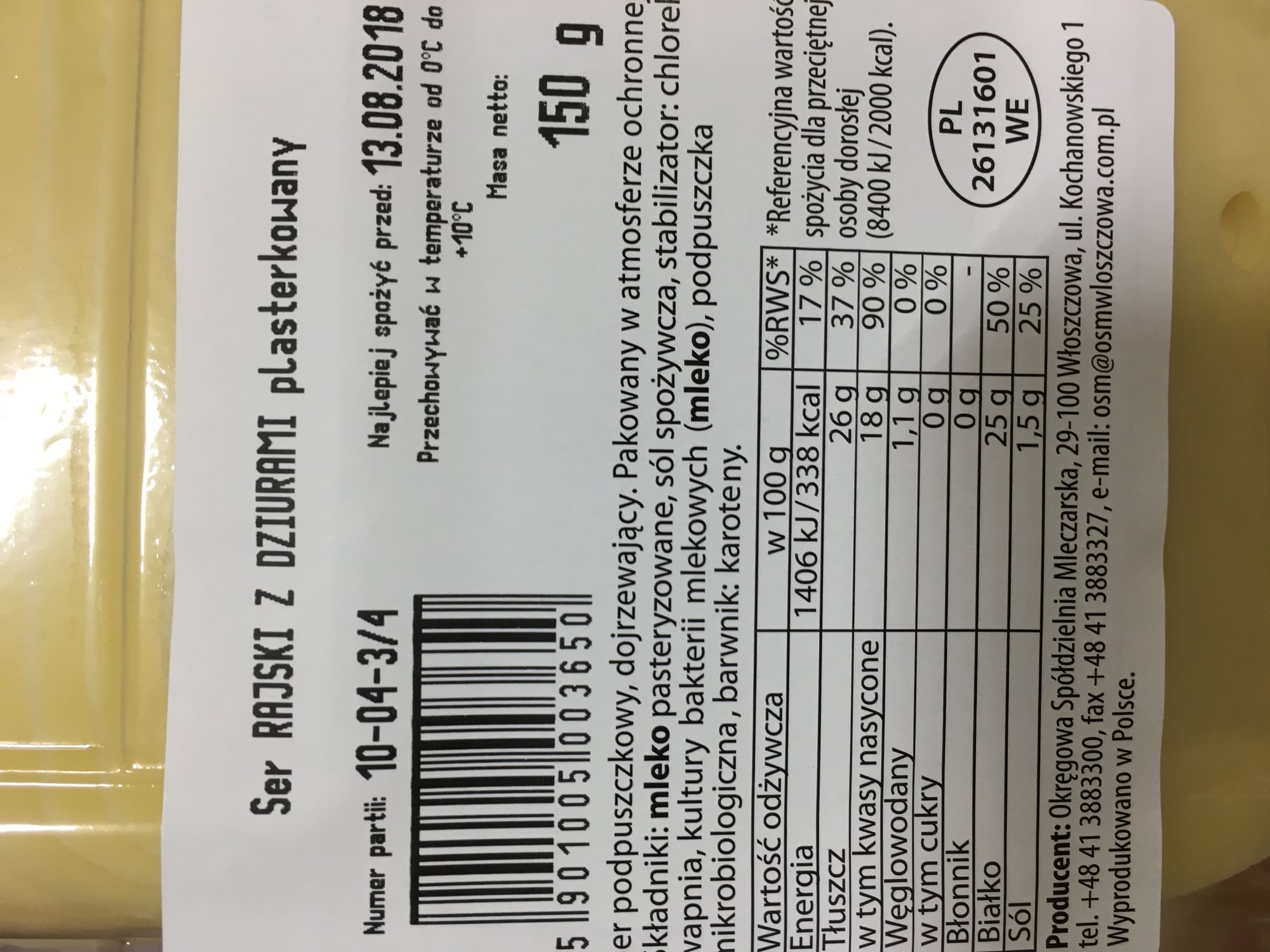 | Składniki | Mleko pasteryzowane, sól spożywcza, stabilizator: chlorek wapnia, kultury bakterii mlekowych (mleko), podpuszczka mikrobiologiczna, barwnik: karoteny |