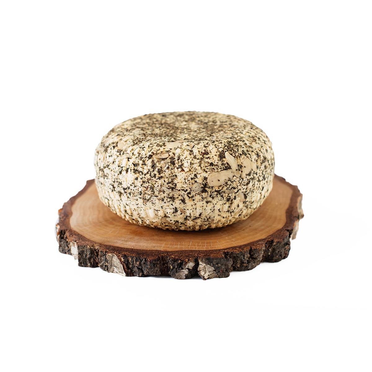 Podpuszczkowy ser długo dojrzewający z pełnotłustego mleka krowiego z dodatkiem mieszanki: suszonego pomidora, bazylii, czosnku oraz czosnku niedźwiedziego (1-2%). Produkt regionalny posiadający LOGO: Chronione Oznaczenie Geograficzne.