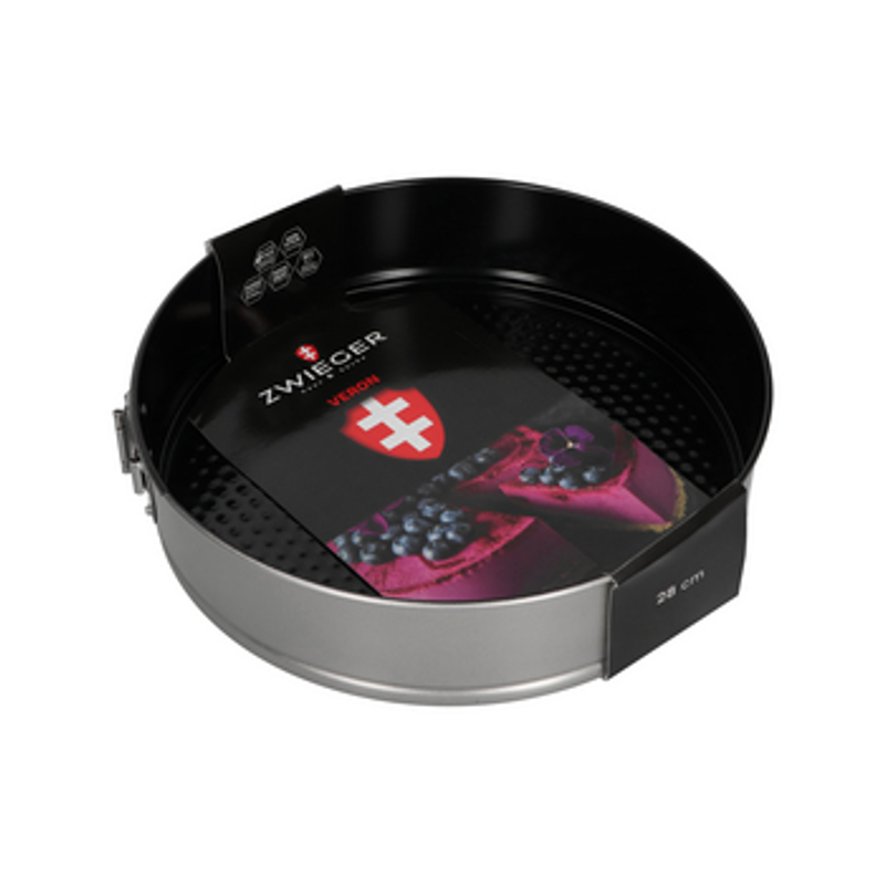 i bardzo szybkie przenikanie ciepła do przygotowywanego ciasta dając tym samym niezwykły komfort i pewność użytkowania. Powłoka ta zapobiega również przywieraniu ciasta do dna i brzegów formy sprawiając, że wypieki będzie można z łatwością wyciągnąć z formy. Tego typu formy do pieczenia nie zawsze wymagają smarowania tłuszczem (zależy to od rodzaju ciasta), dzięki czemu wypieki są mniej kaloryczne. Zastosowane w kolorystyce tej linii połączenie czerni i srebra jest nie tylko piękne, ale i praktyczne (czerń wewnątrz formy wspomaga przewodzenie ciepła do wnętrza ciasta). Forma VERON jest bardzo łatwa w czyszczeniu. Nasze produkty polecane są do codziennych wypieków w każdym domu!