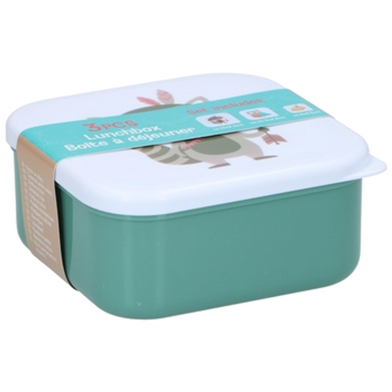 Ten 3-częściowy zestaw lunchboxów jest idealny do transportowania posiłków w podróży. Każde pudełko ma zabawny design i oferuje dużo miejsca na przekąski. Idealne do szkoły lub pracy. Wzór ze zwierzątkami: szop, sowa, lis