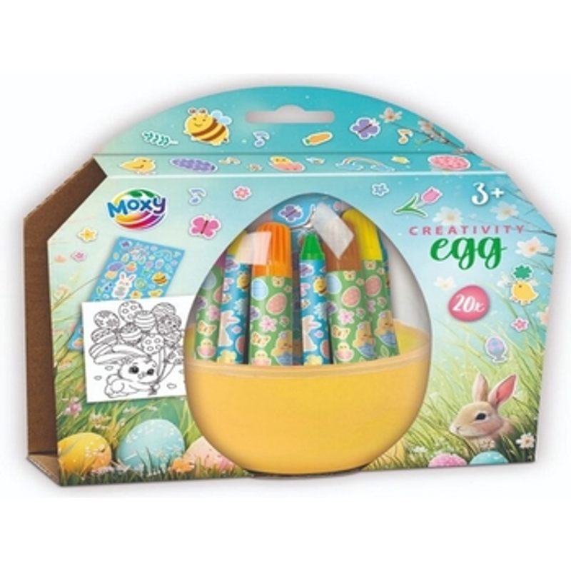 Zestaw kreatywny Wielkanocne jajko z akcesoriami. Zawiera 6 markerów i 6 kredek.