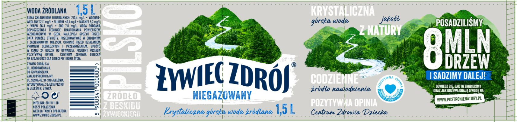 Żywiec Zdrój 1,5 litra to krystalicznie czysta, górska woda źródlana, czerpana z dziewiczych terenów beskidu Żywieckiego, czemu zawdzięcza swój smak.