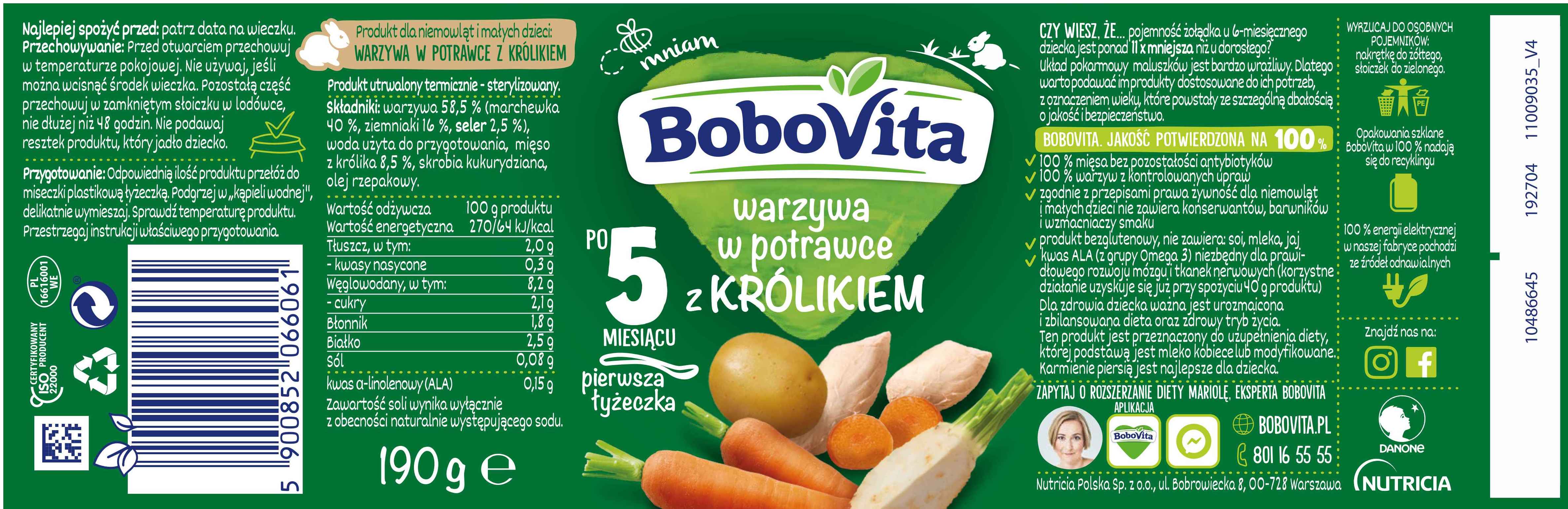 bobovita warzywa w potrawce z królikiem po 5 miesiącu 190 g