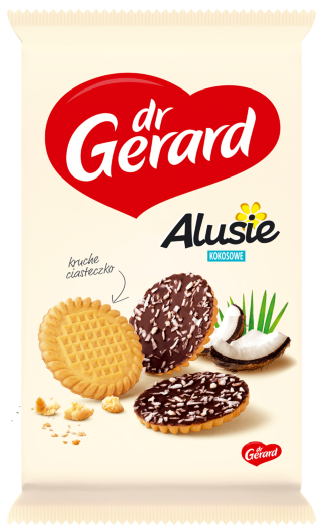 dr Gerard Alusie Herbatniki z polewą kakaową posypane wiórkami kokosowymi 160 g