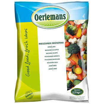 Mieszanka wiosenna 2,5 kg - wysokiej jakości produkt. Doskonały jako dodatek do różnych dań, bądź jako danie jarskie. Skład: kalafior róża, brokuł róża, młoda marchew cała, cukinia plastry, zółta marchew plastry.