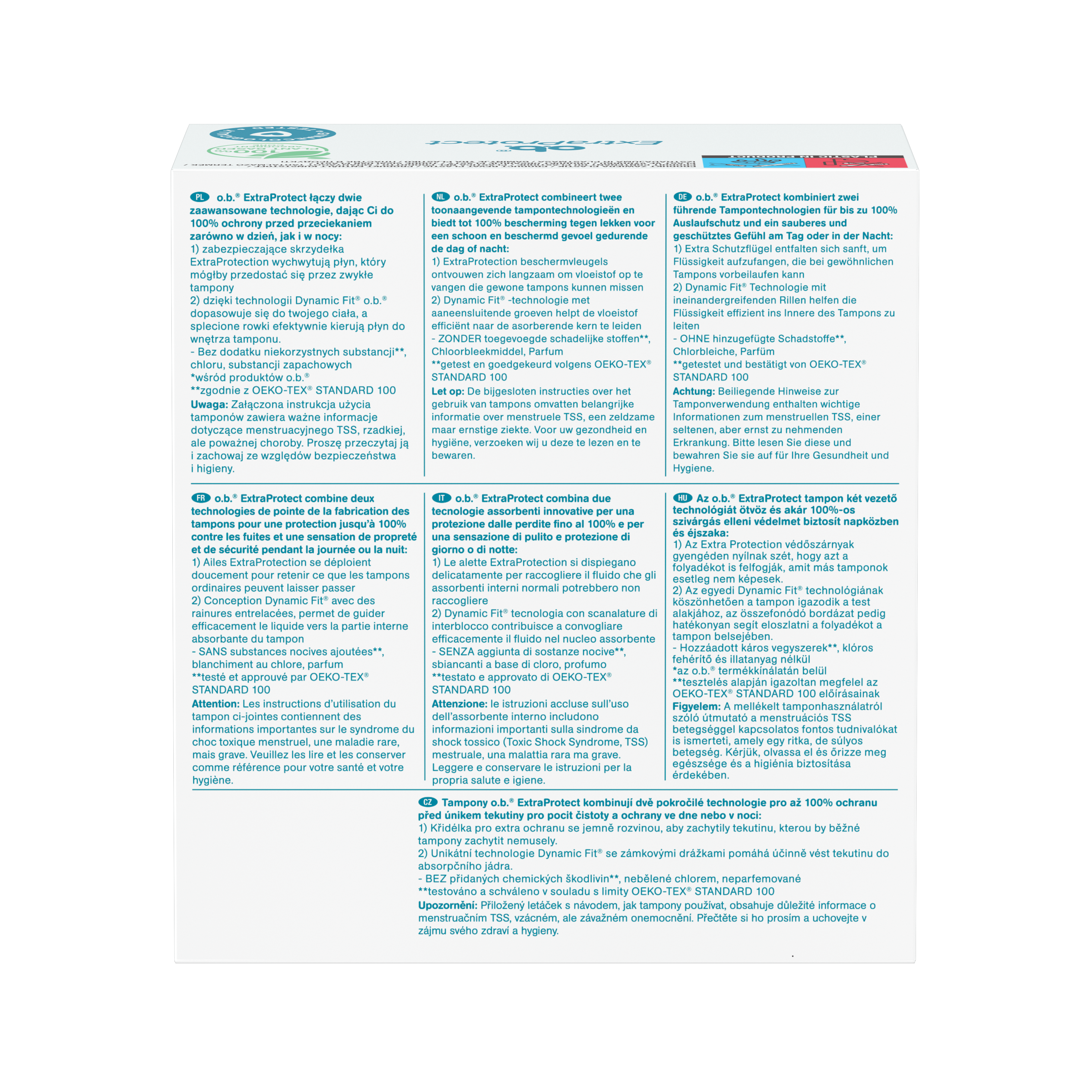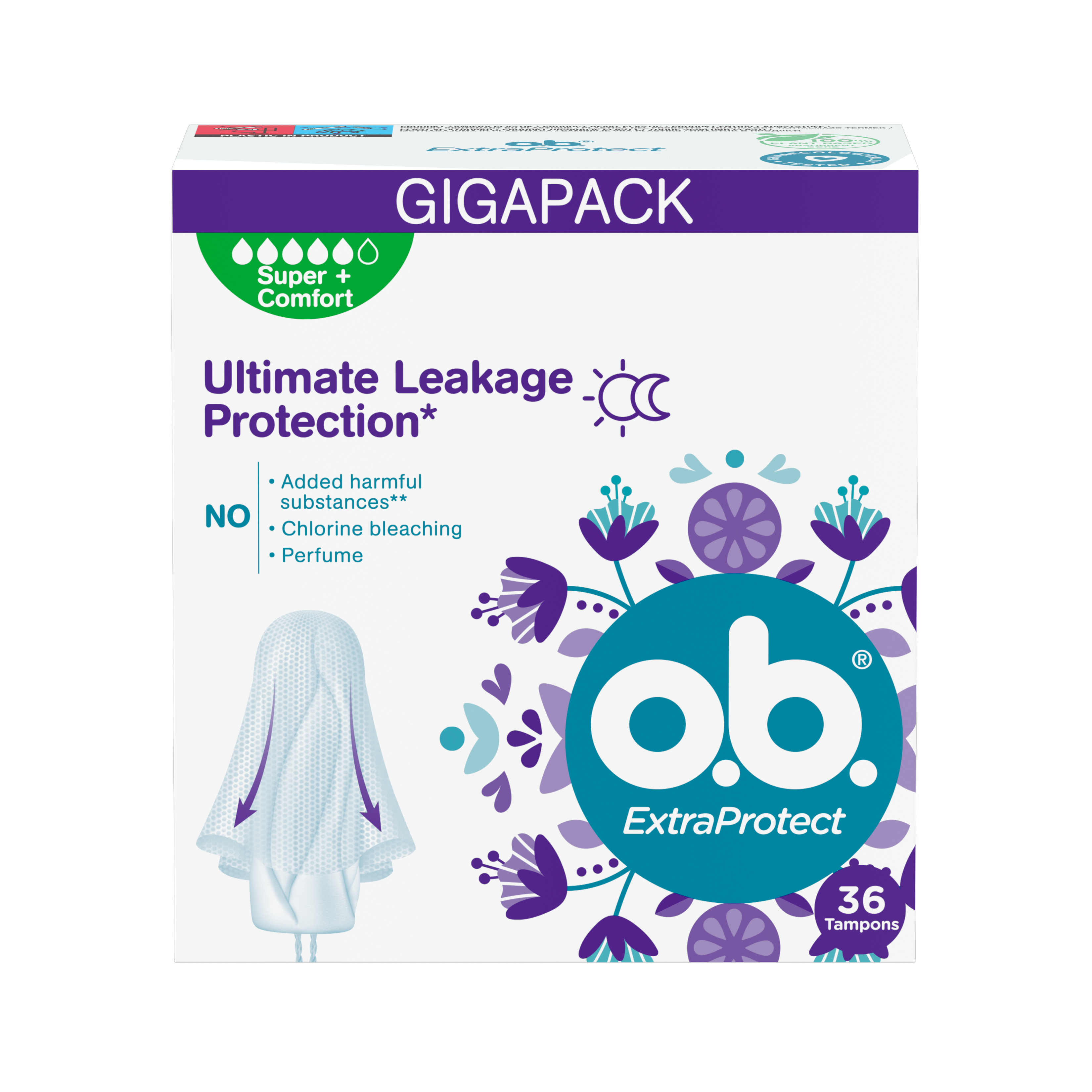 Tampony o.b.® Extra Protect™ dla wyjątkowego komfortu* i niezawodnej ochrony. Dzięki technologii Dynamic Fit™ o.b.® dopasowuje się do twojego ciała, a splecione rowki efektywnie kierują płyn do wnętrza tamponu; z otoczką SilkTouch™ dla łatwej aplikacji. *wśród produktów o.b.® Testowane ginekologicznie.